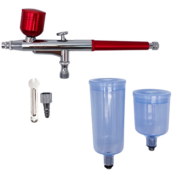 Aerógrafo de acción simple con boquilla de 0,3 mm y tres cazoletas para pintura desde 20 a 40 cc. Múltiples aplicaciones. Ideal para trabajos de pintura en modelismo, manualidades, hobby, maquillaje y otras muchas aplicaciones. Fácil de usar.