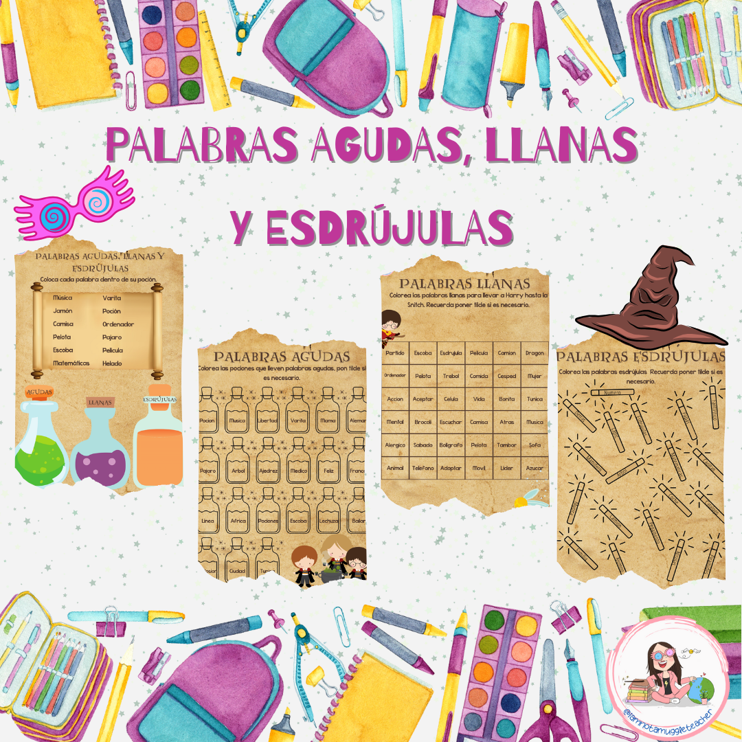 Material de agudas, llanas y esdrújulas con temática Harry Potter que he creado.