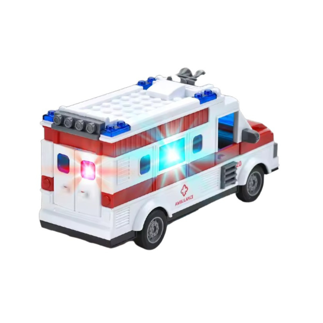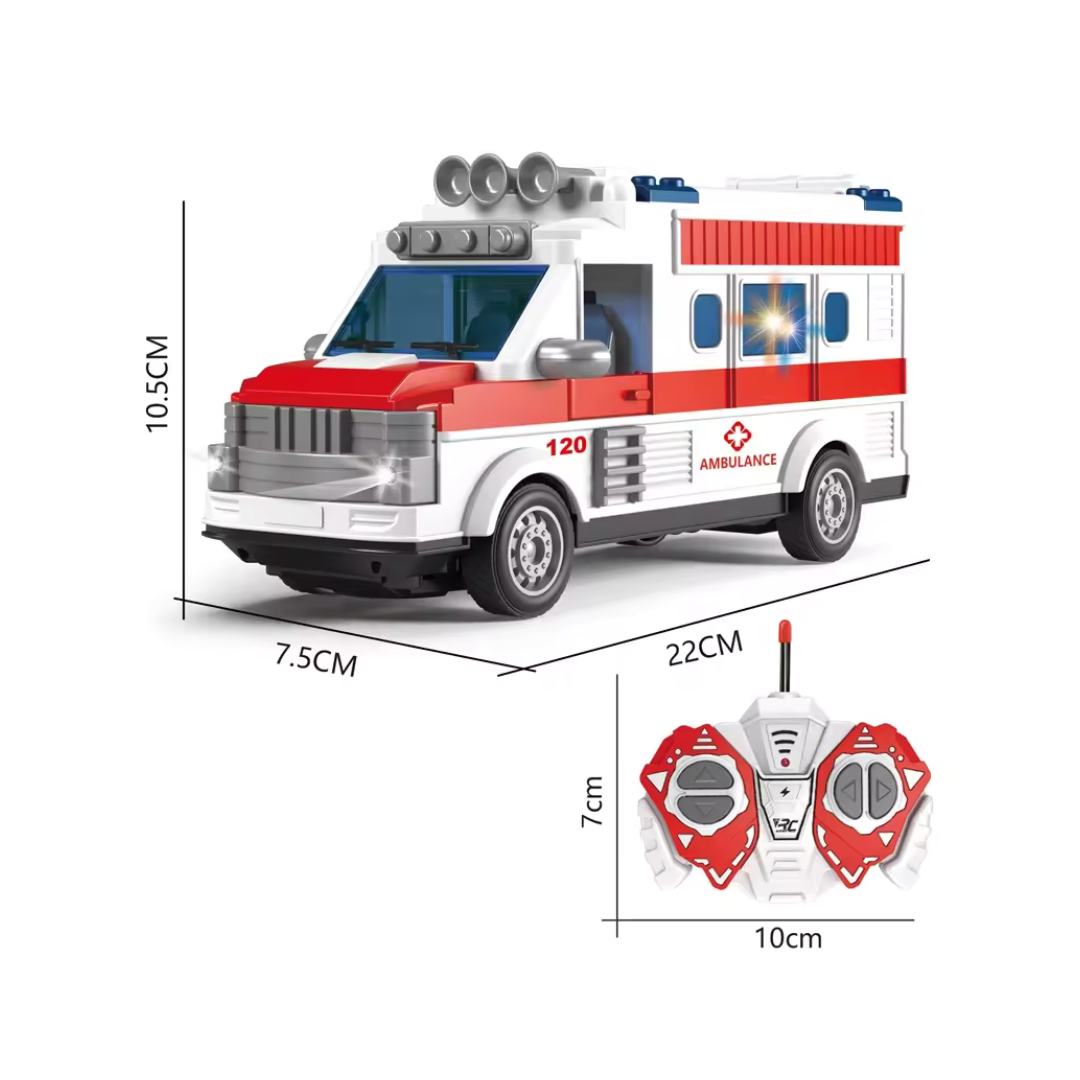 Control Remoto Totalmente Funcional: Equipado con un control remoto intuitivo que permite mover la ambulancia hacia adelante, hacia atrás, girar a la izquierda y a la derecha, proporcionando una experiencia de conducción realista y emocionante.