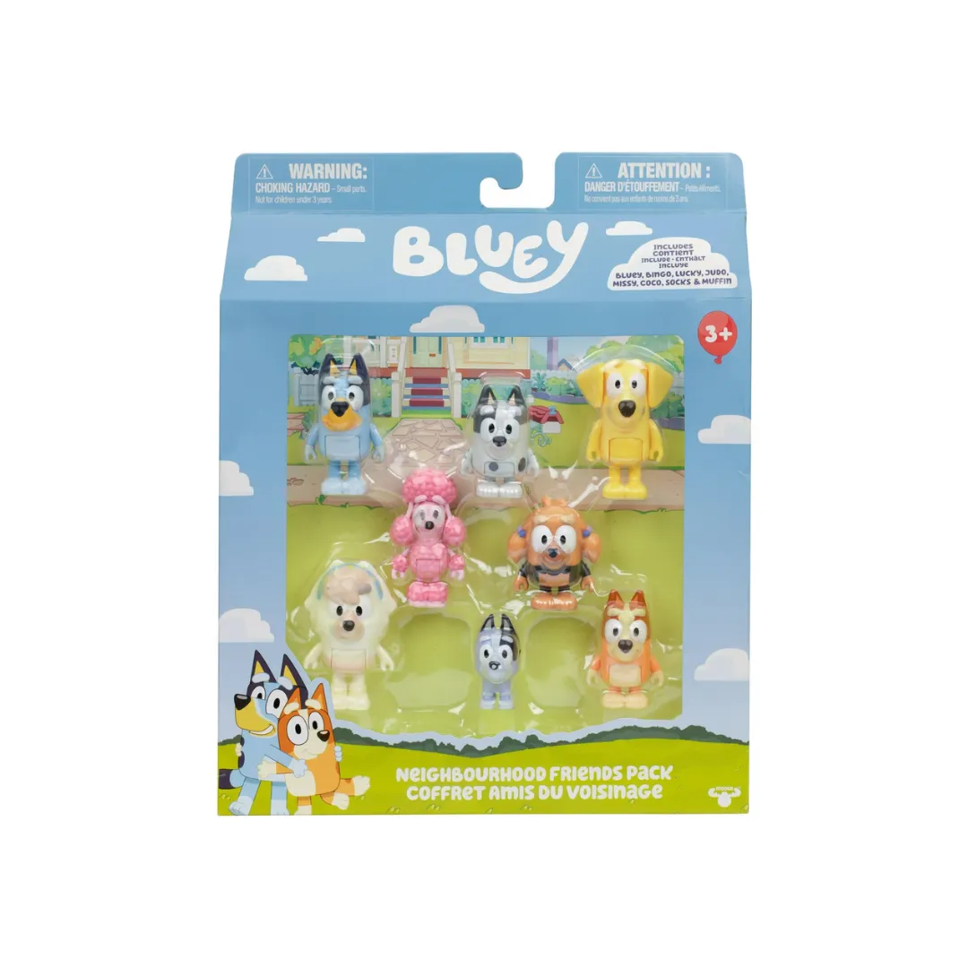 • Incluye figuras de Bluey, Bingo y otros personajes del vecindario