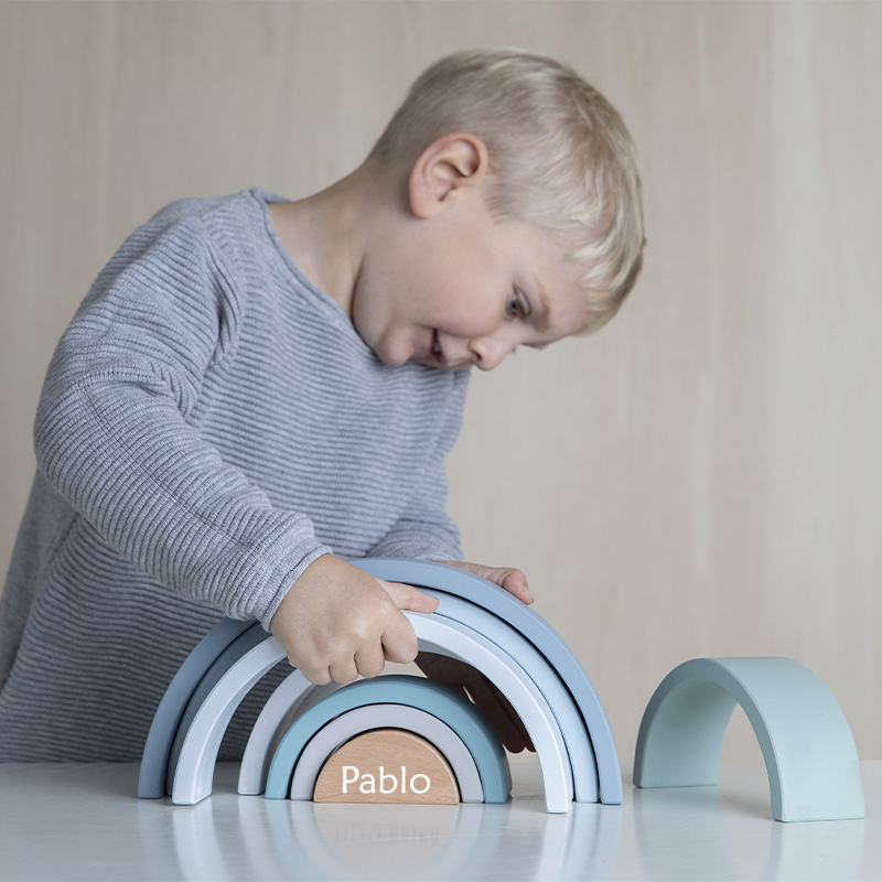 Descripción Arcoíris Madera Apilable Azul