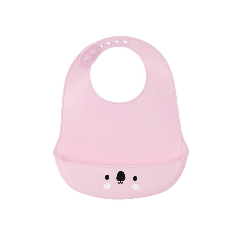 Babero de silicona blandito de fácil limpieza y gran durabilidad. Se puede ajustar en el cuello en posiciones diferentes.