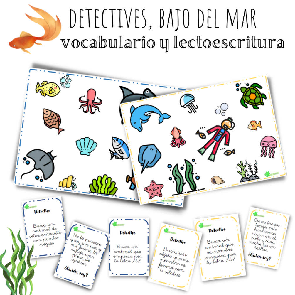 En las tarjetas encontrarás indicaciones mediante adivinanzas, buscar un personaje o animal según su letra inicial, por le número de sílabas… y muchos más ejercicios.