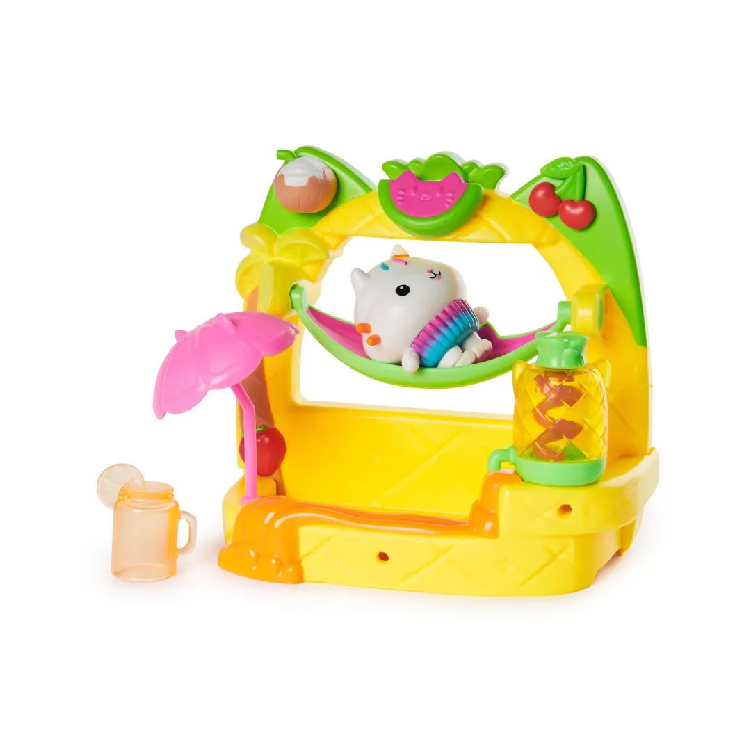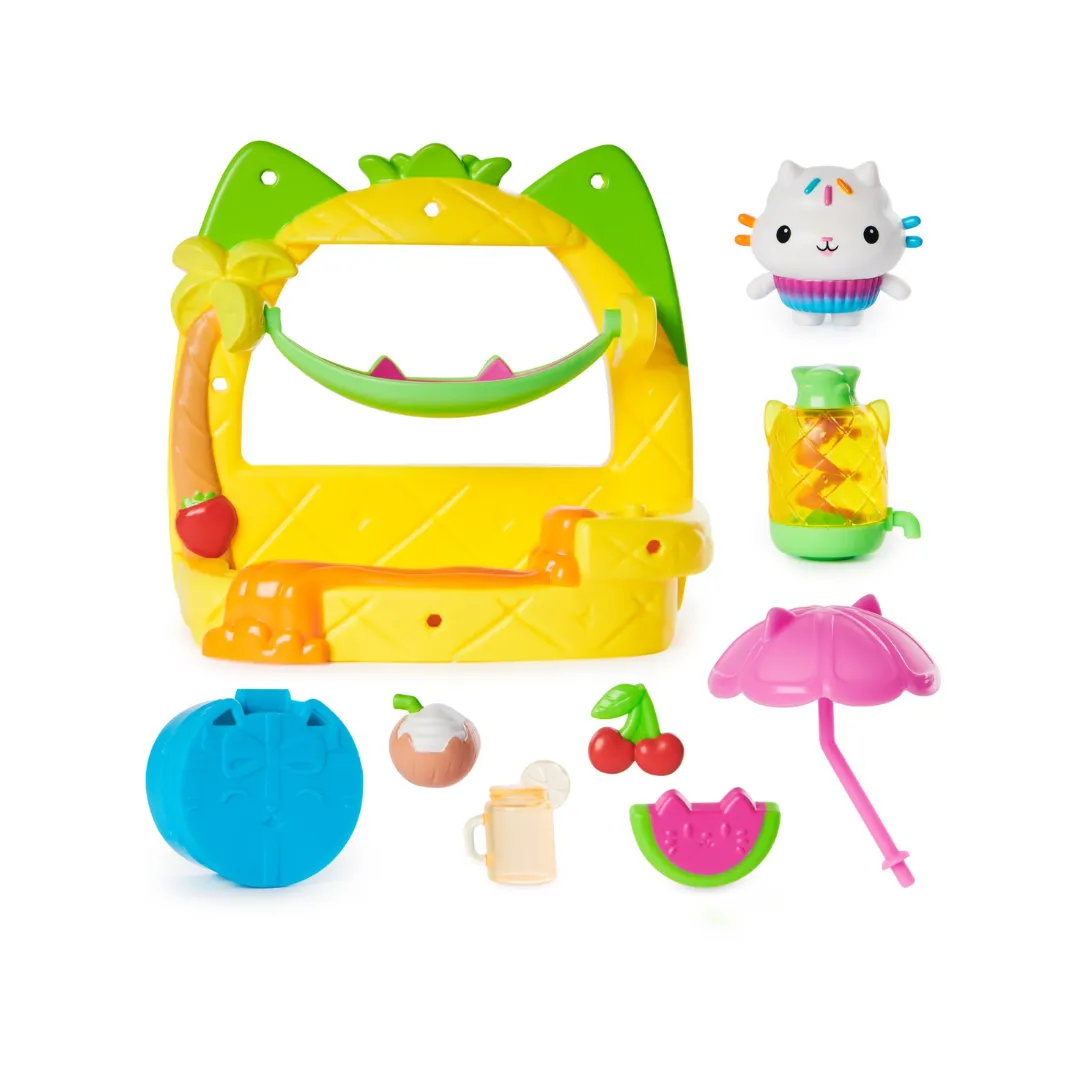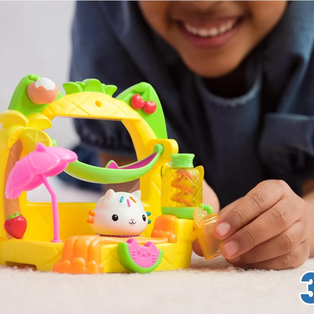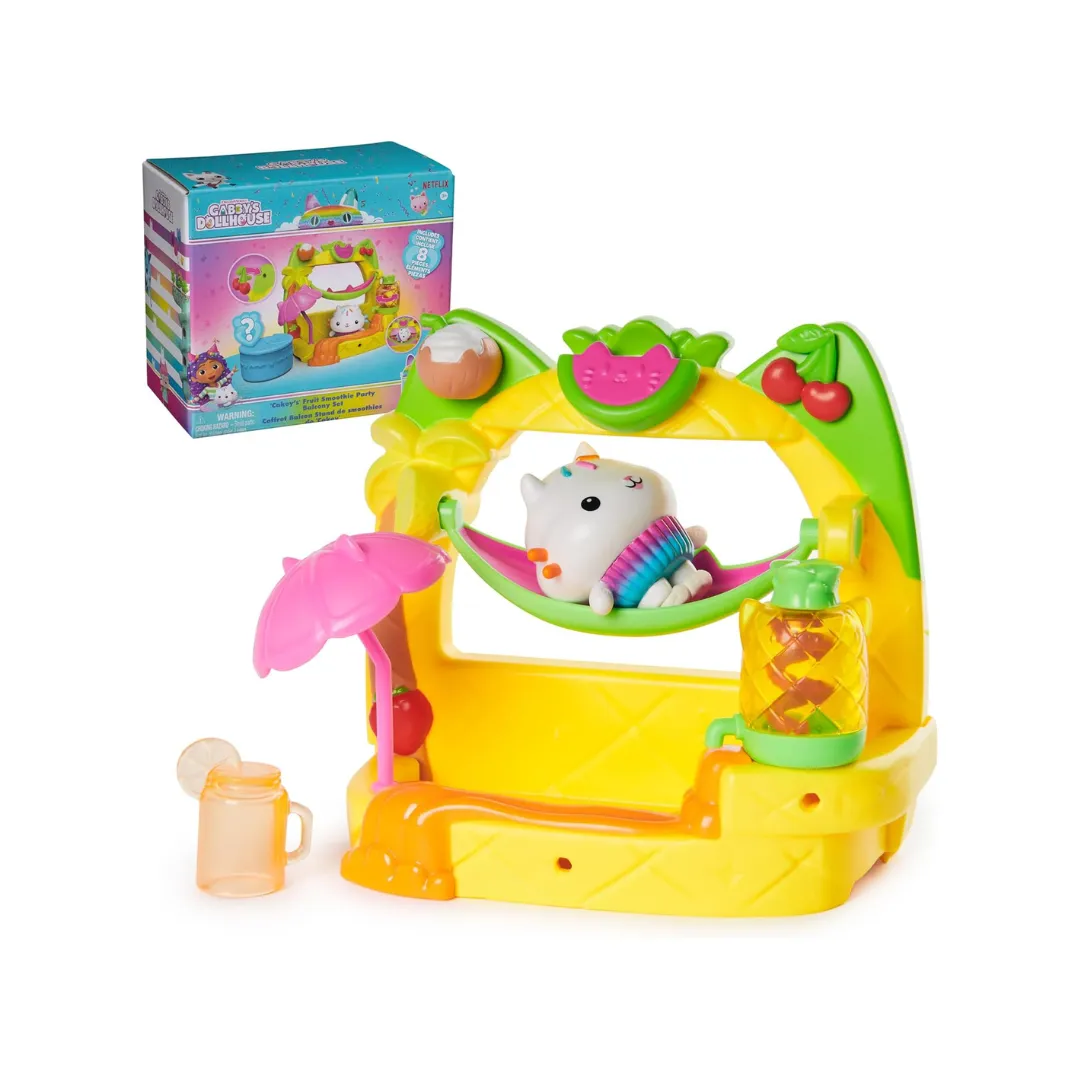 - Personajes y Accesorios Incluidos: El set incluye una figura de Gabby y su adorable amigo, Pandy Paws, junto con divertidos accesorios como una licuadora, tazas de batidos, y elementos decorativos. ¡Todo lo que necesitas para una fiesta perfecta!