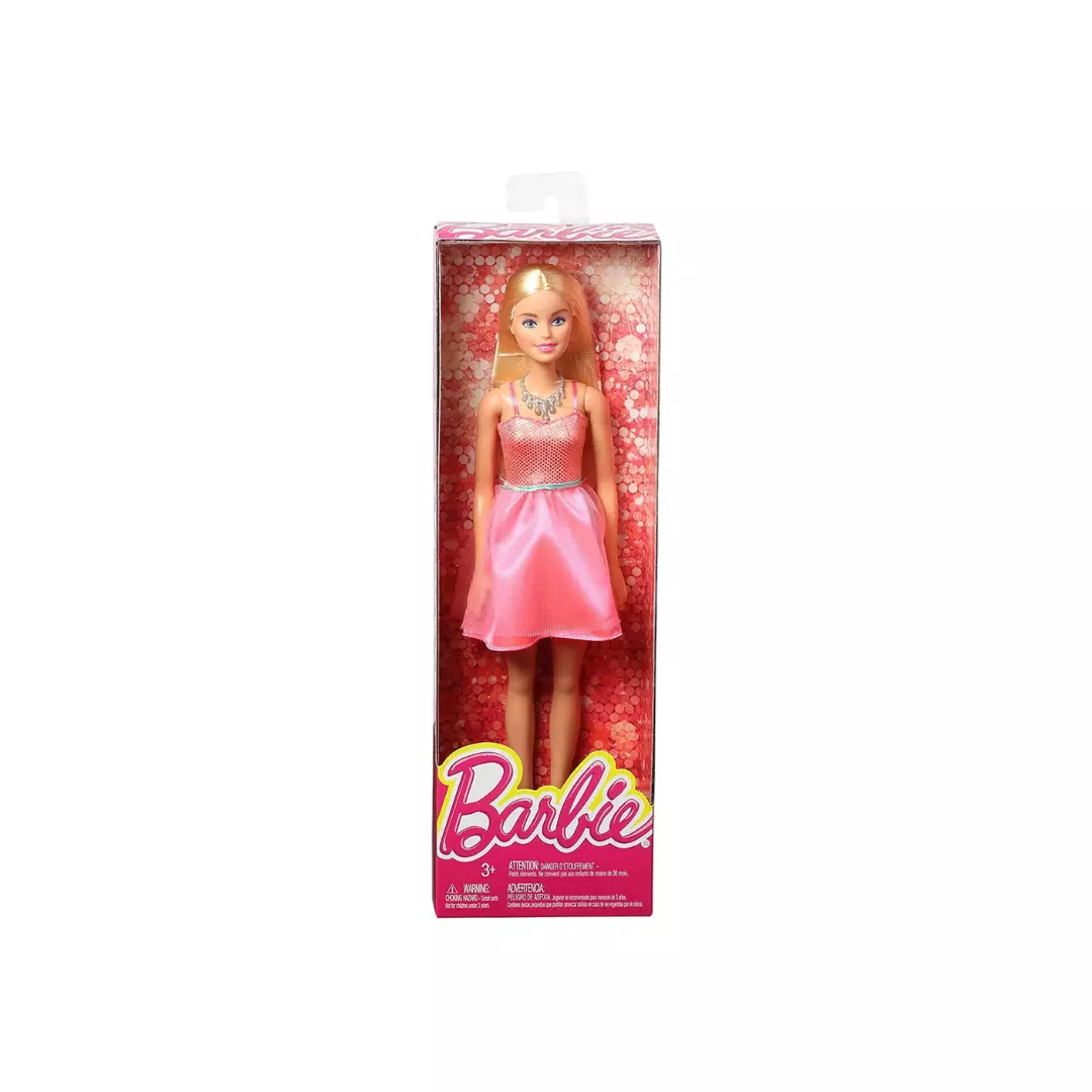 La muñeca Barbie siempre está en la lista de las mejor vestidas, ¡y este look glamoroso es el estilo característico de Barbie! Con un corpiño brillante y una falda reluciente, este vestido es perfecto para un estreno, una fiesta o la alfombra rosa. La silueta moderna y los colores brillantes añaden diversión moderna. Un collar llamativo, una faja contrastante y zapatos a juego completan este fabuloso look.
