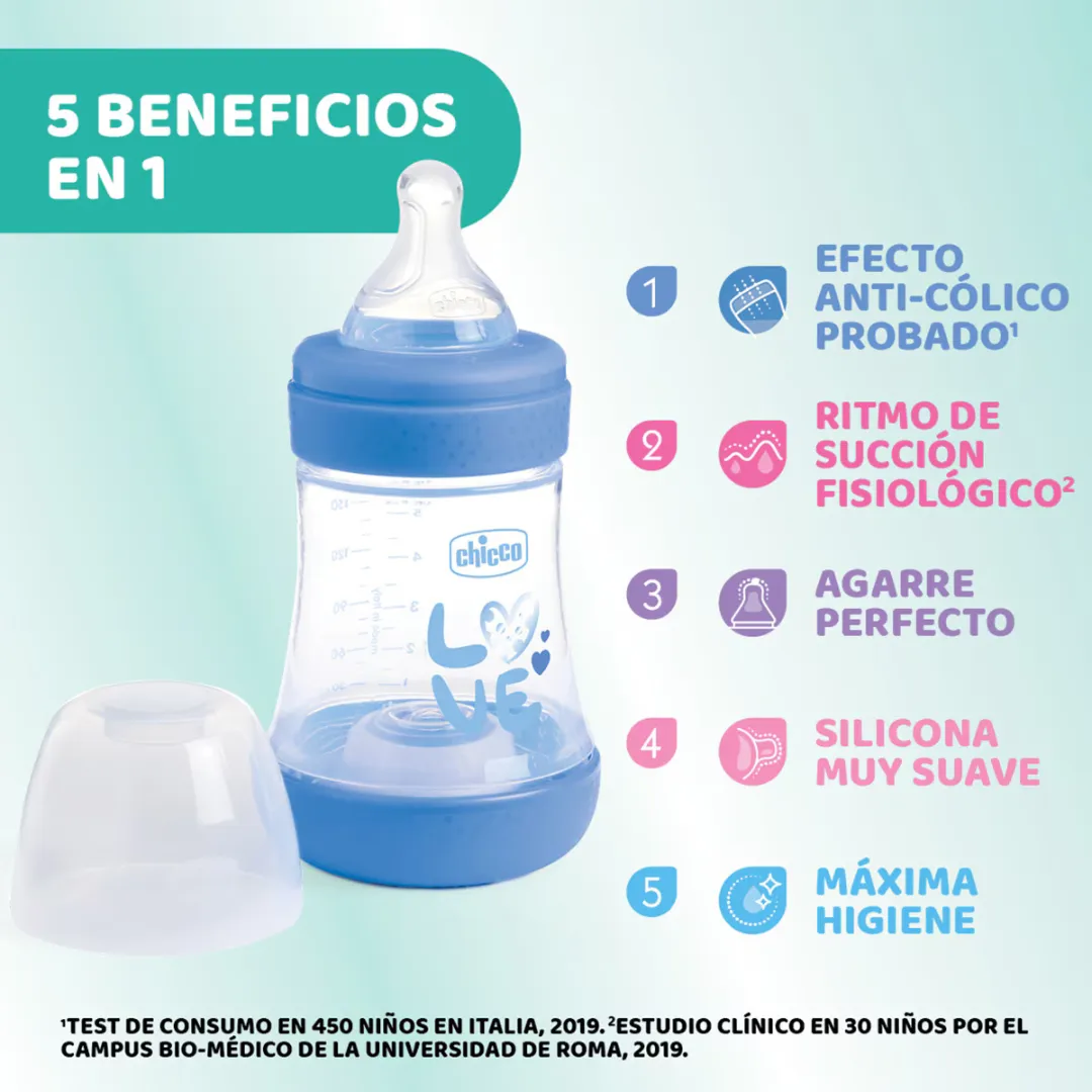 Con el Biberón Perfect 5 de Chicco, brinda a tu bebé una experiencia de alimentación que combina tecnología avanzada con el máximo confort, asegurando un desarrollo sano y feliz.