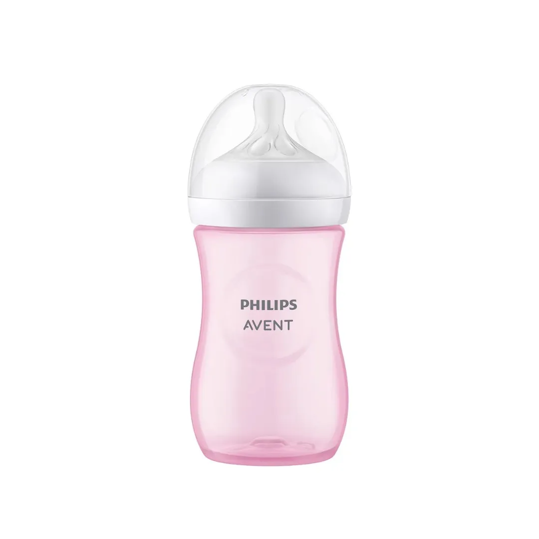 Biberón Avent Natural Response de 240ml, diseñado para bebés desde 1 mes. Con tetina Flow 3 que libera leche solo al succionar, sistema anticólicos y material libre de BPA.