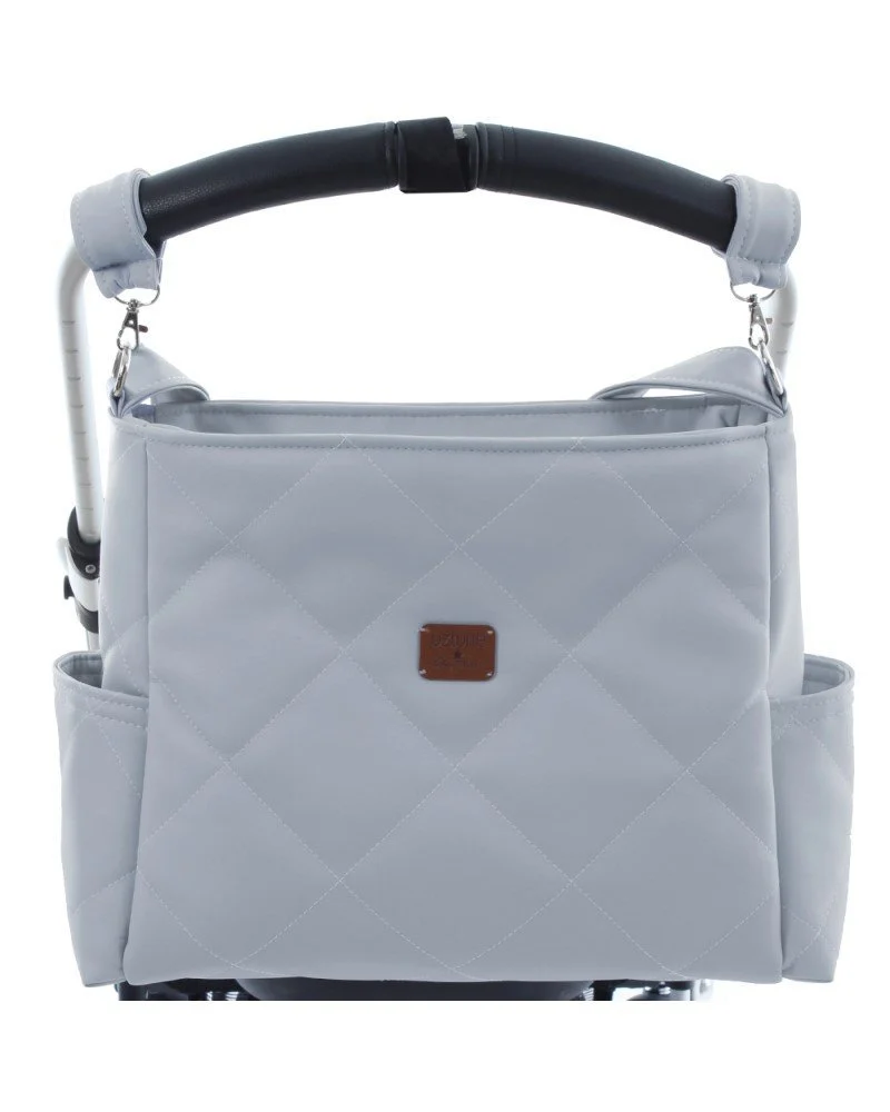 Amplio bolso que dispone de 2 bolsillos laterales y cierre superior de cremallera. Se puede acoplar a cualquier tipo de cochecito gracias a su ajuste de asa con velcro, que también permite poderlo llevar en el hombro gracias a otra tira más larga. Muy elegante, atemporal y práctico bolso para llevar a la hora del paseo todo lo necesario para ti y tu bebé, ya que dispone de separadores botelleros, 2 bolsillos separadores laterales interiores y 1 bolsillo con cierre de cremallera interior.