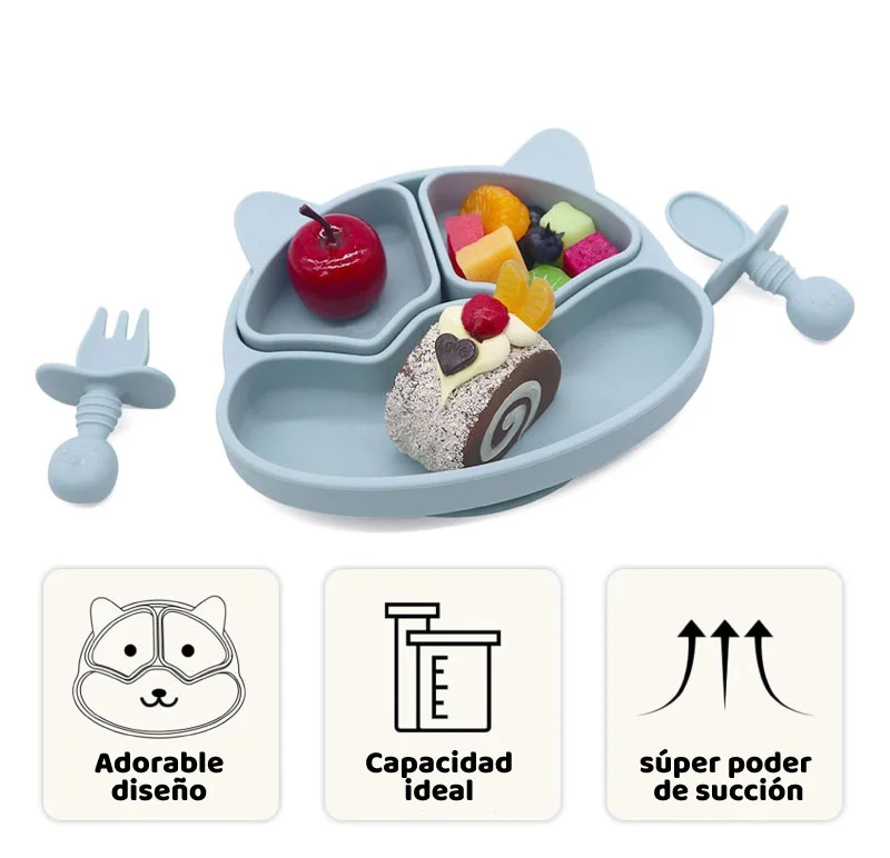 - El plato con divisiones te permite tener los alimentos separados en su espacio