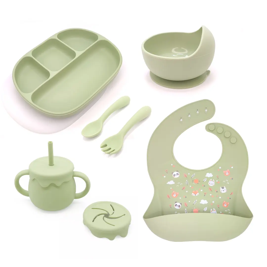 Elementos incluidos: 1 Plato de silicona 4 divisiones con tapa, 1 Bolw de silicona clasicc, 1 Babero de silicona con diseño safari, 1 vaso de silicona con tapa y cañita honey, 1 tapa porta snack, 1 set de cubiertos de silicona cuchara y tenedor.