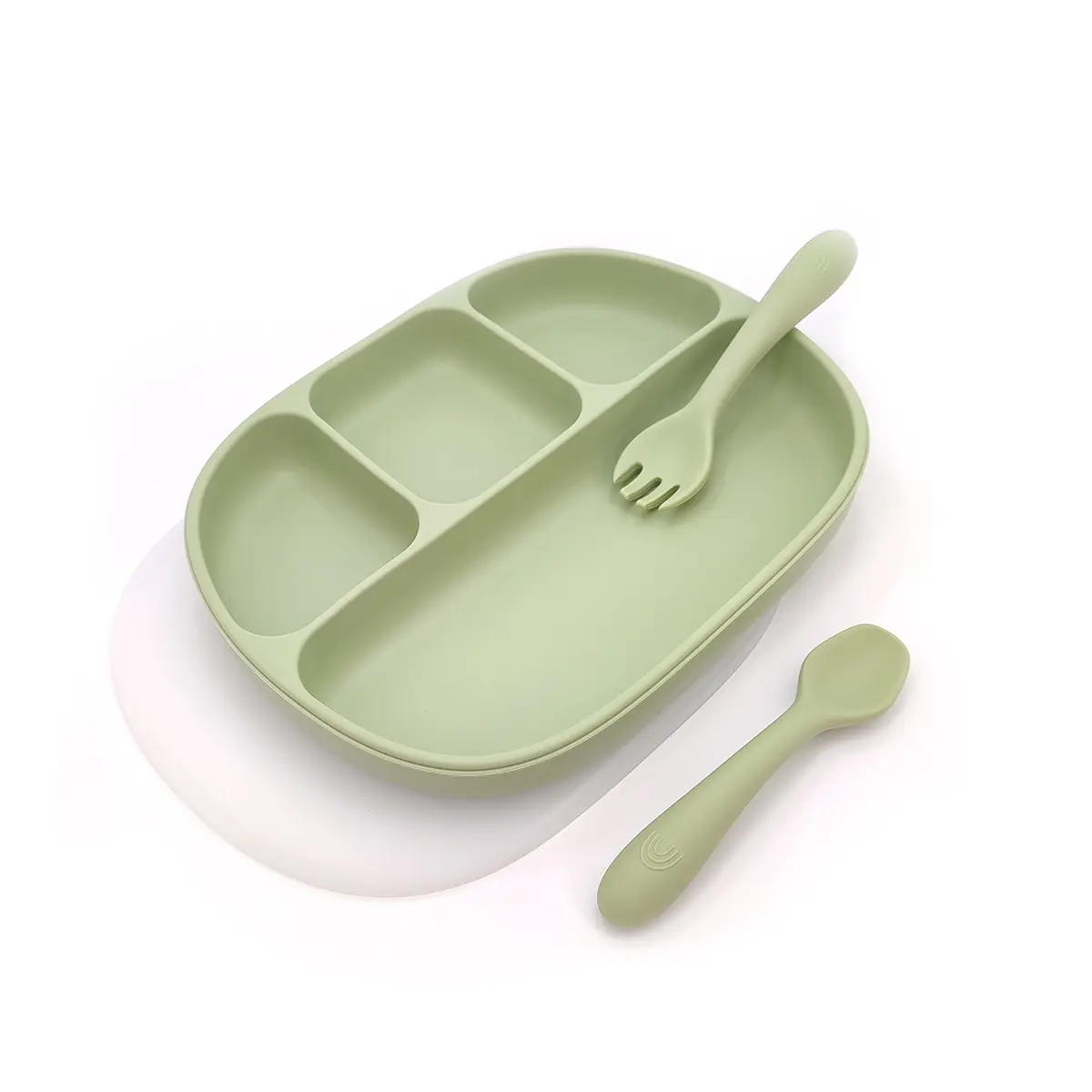 Elementos incluidos: 1 Plato de silicona 4 divisiones con tapa, 1 bolw de silicona clasic, 1 babero de silicona print, 1 vaso de silicona 250 ml con asas, 1 tapa porta snack, 1 cuchara, 1 tenedor