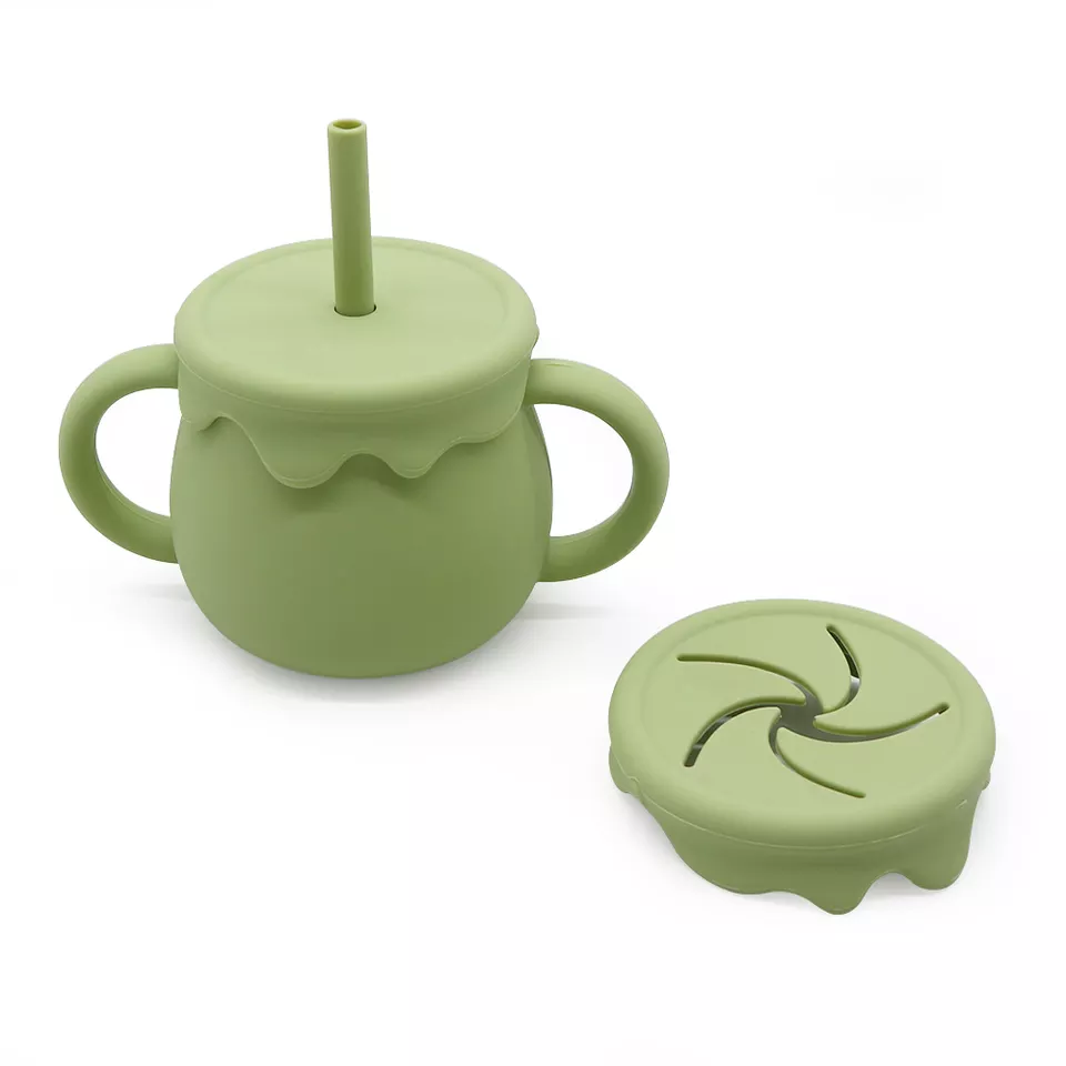 - El vasito modelo honey te permite usarlo de tres maneras, sólo como vasito boca ancha, con cañita y como porta snack.