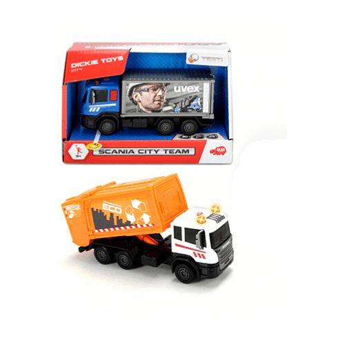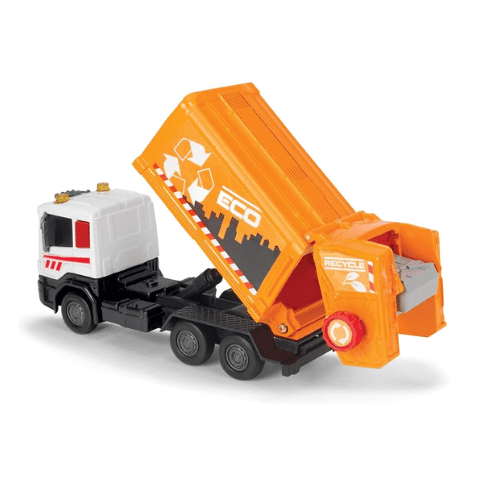 Camión de Ciudad Dickie Toys con luces y sonidos, perfecto para que los niños jueguen y aprendan sobre la vida de los vehículos urbanos.