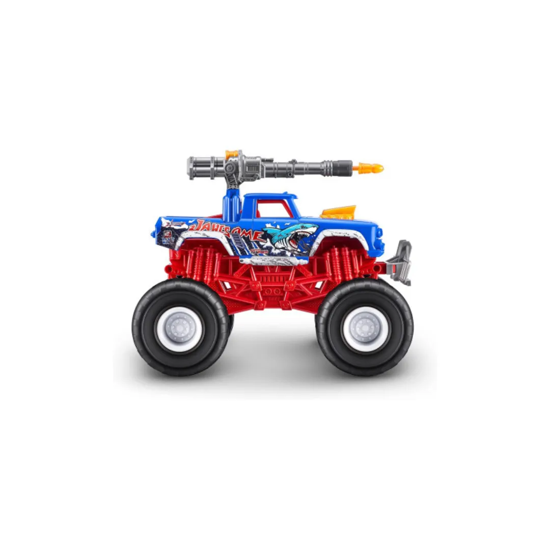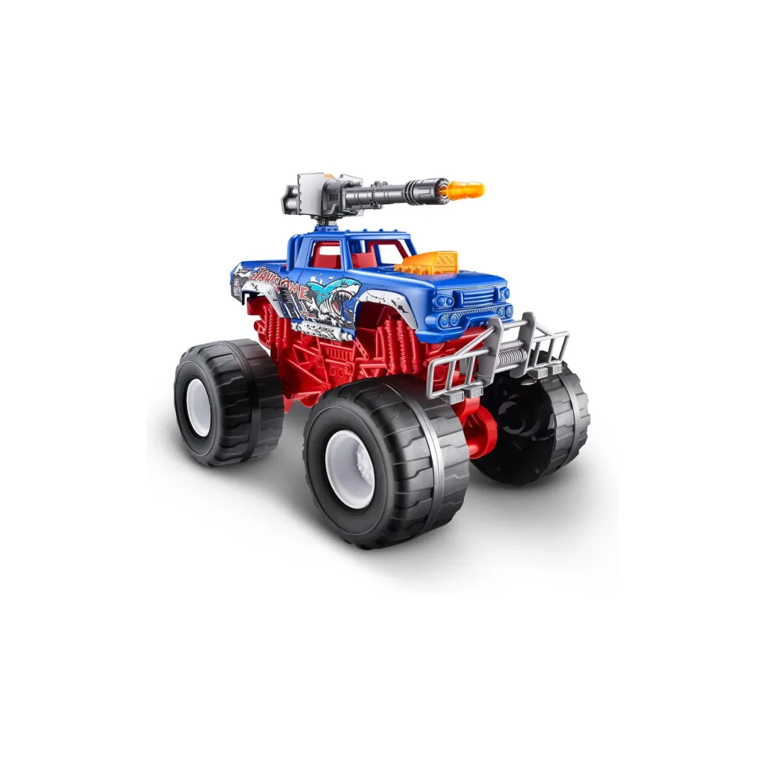 Prepárate para una batalla épica con el Monster Truck “Jawesome” de Zuru Metal Machines. Este camión monstruo metálico combina un diseño imponente con grandes ruedas y suspensión real para aplastar todo lo que se cruce en tu camino. Tiene un arma disparable en el techo para lanzar ataques sorpresivos, y además cuenta con luces y sonidos que intensifican la acción, haciendo que cada choque sea aún más espectacular.