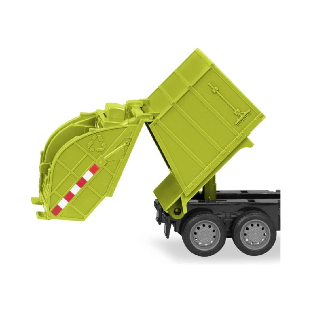 - Brazo Levantador Funcional: Incluye un brazo mecánico operable mediante el control remoto para levantar y vaciar los contenedores de basura, enseñando a los niños sobre el proceso de recolección de residuos.