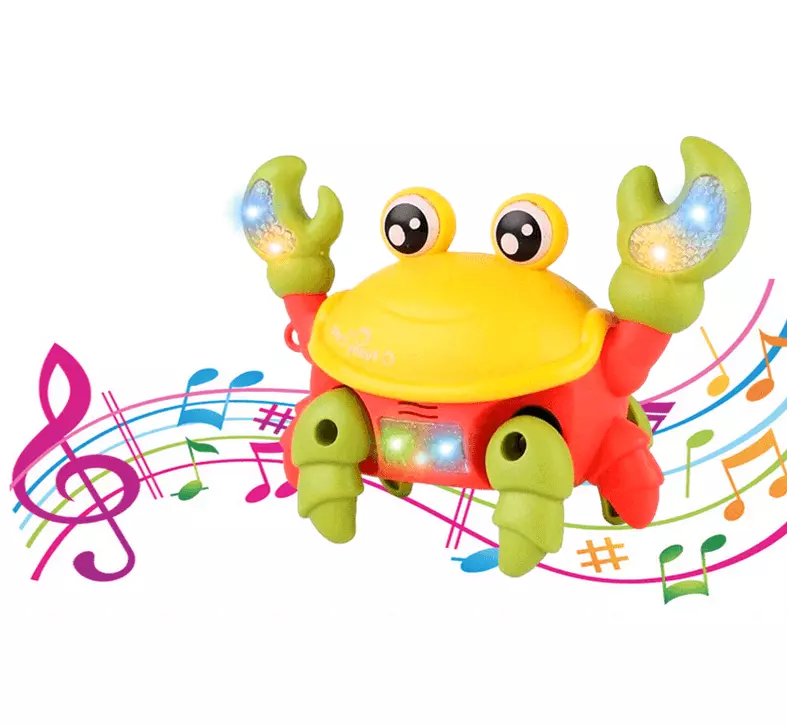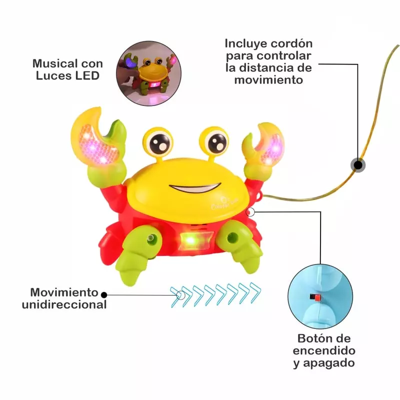 Este adorable crustáceo cobra vida con luces vibrantes y sonidos encantadores. Simplemente enciende el interruptor y observa cómo realiza una auténtica marcha horizontal, imitando la animada danza de un cangrejo.