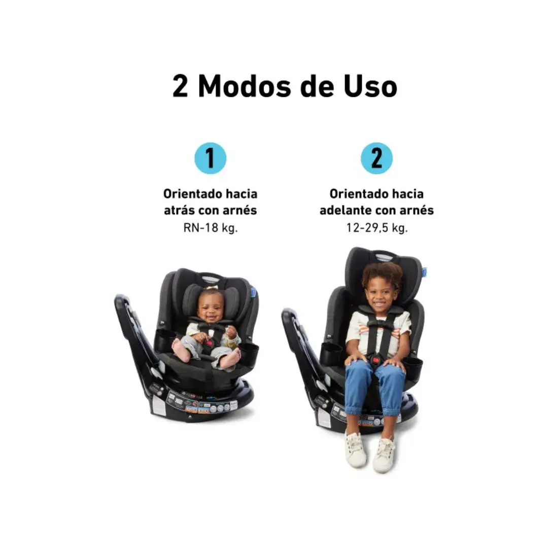 - 2 modos de uso: A contramarcha desde 1.8 kg hasta 18 kg. A favor de la marcha desde 12 kg hasta 29.5 kg.