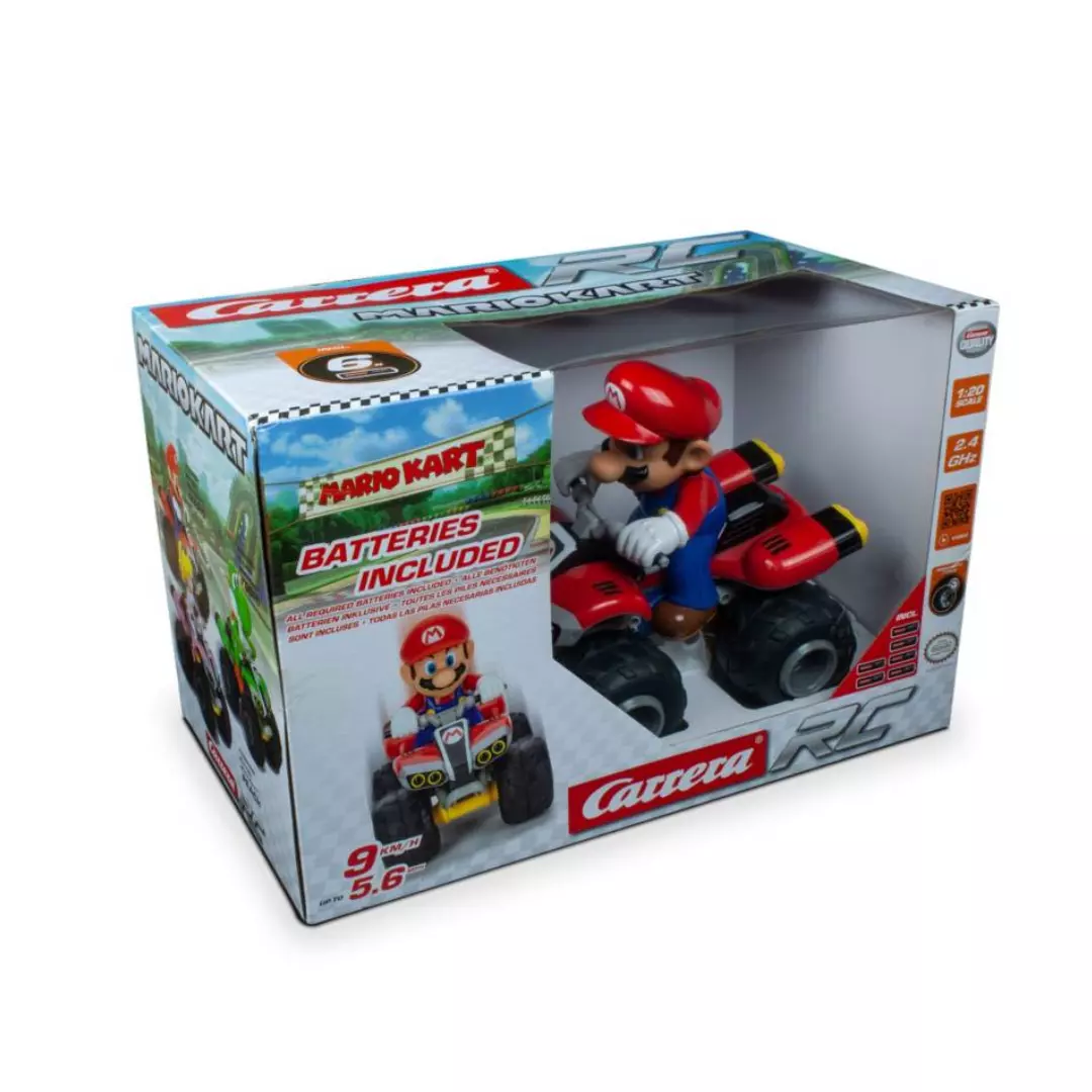 El cuatrimoto alcanza una velocidad de hasta 9 km/h y cuenta con una batería recargable que brinda hasta 30 minutos de autonomía por carga. Incluye cable USB para carga sencilla y solo necesitás 2 pilas AAA para el control remoto (no incluidas). Perfecto para fans de todas las edades, este Mario en cuatrimoto RC es ideal para jugar, regalar o coleccionar. ¡Convertí tu casa en una pista de Mario Kart!
