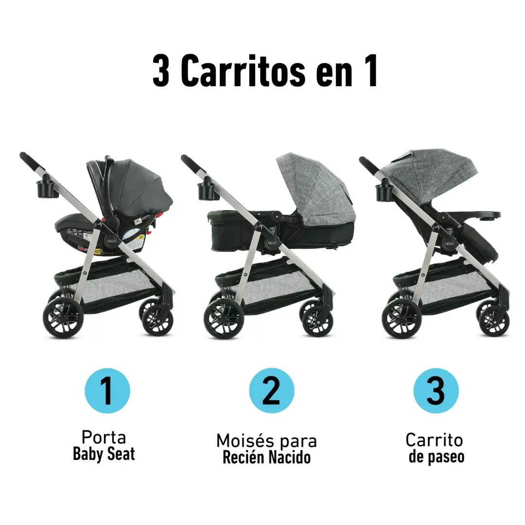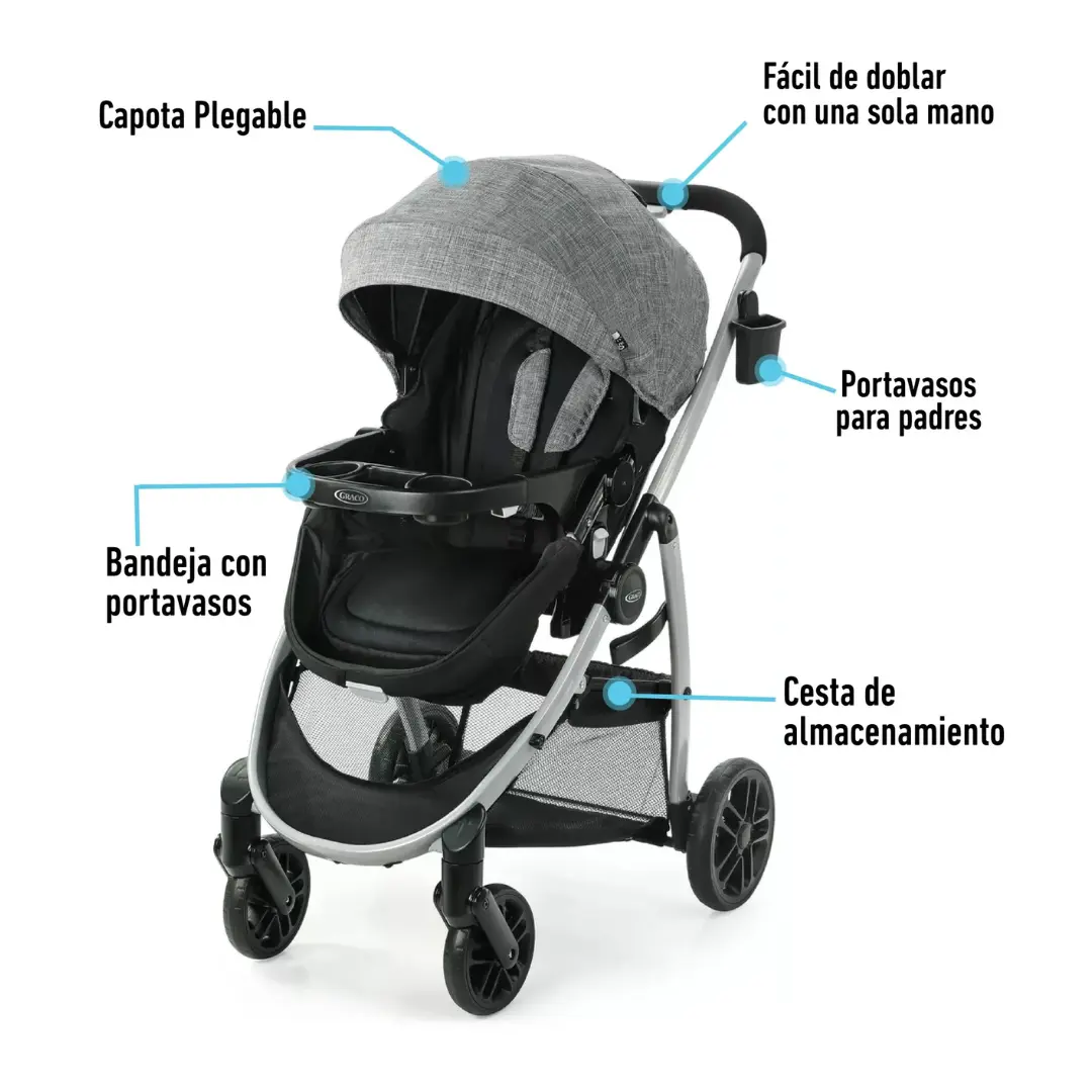 • Incluye el baby seat Graco SnugRide 35 Lite DLX, orientado hacia atrás para bebés de RN a 16 kg para una fácil transición del auto al carrito.