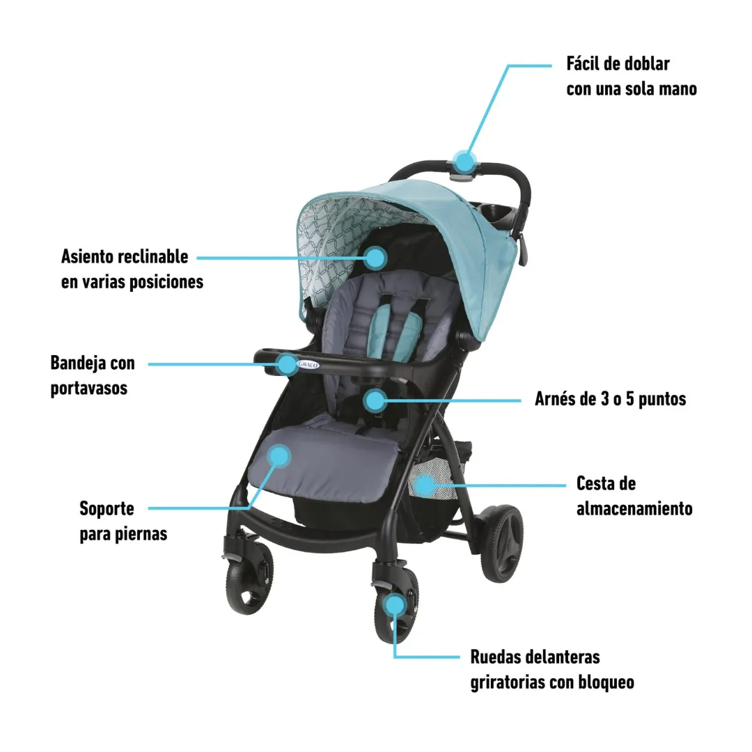 - Bandeja para padres con portavasos y almacenamiento para llevar lo esencial.