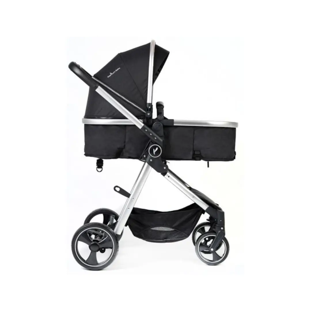 El asiento puede instalarse mirando hacia delante como hacia atrás, y en ambas modalidades, como asiento o como moisés. Además, tiene 3 posiciones de reclinado en ambos sentidos, cinturón de seguridad de 5 puntos, barra frontal extraíble, apoyapiés, manillar con ecocuero, capota XXL con borde metálico reforzado y extensión con malla para ventilación, canasto porta objetos, tapizado confortable, suave y lavable, y lo mejor es tiene ruedas traseras todo terreno, con freno centralizado. Coche soporta hasta 15kg.