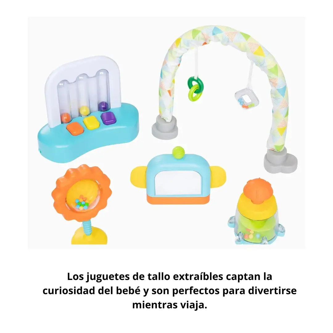 Asiento giratorio 360°, para que el bebé alcance todos los juguetes de la bandeja.