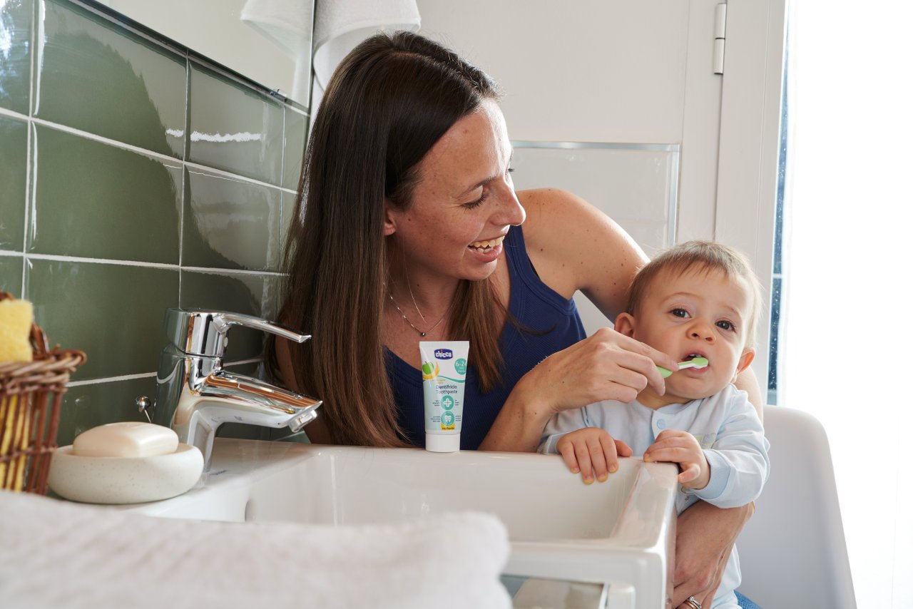 La pasta dental Chicco 6+ meses te apoya en el cuidado bucal respetando el tejido gingival sensible de los más pequeños y el esmalte de los dientes. Indicada para los más pequeños desde la primera aparición de los dientes de leche por su fórmula de baja abrasividad es ideal para no dañarlos, además tu pequeño aprende a escupir para pasar a la pasta con flúor y evitar que la ingiera.