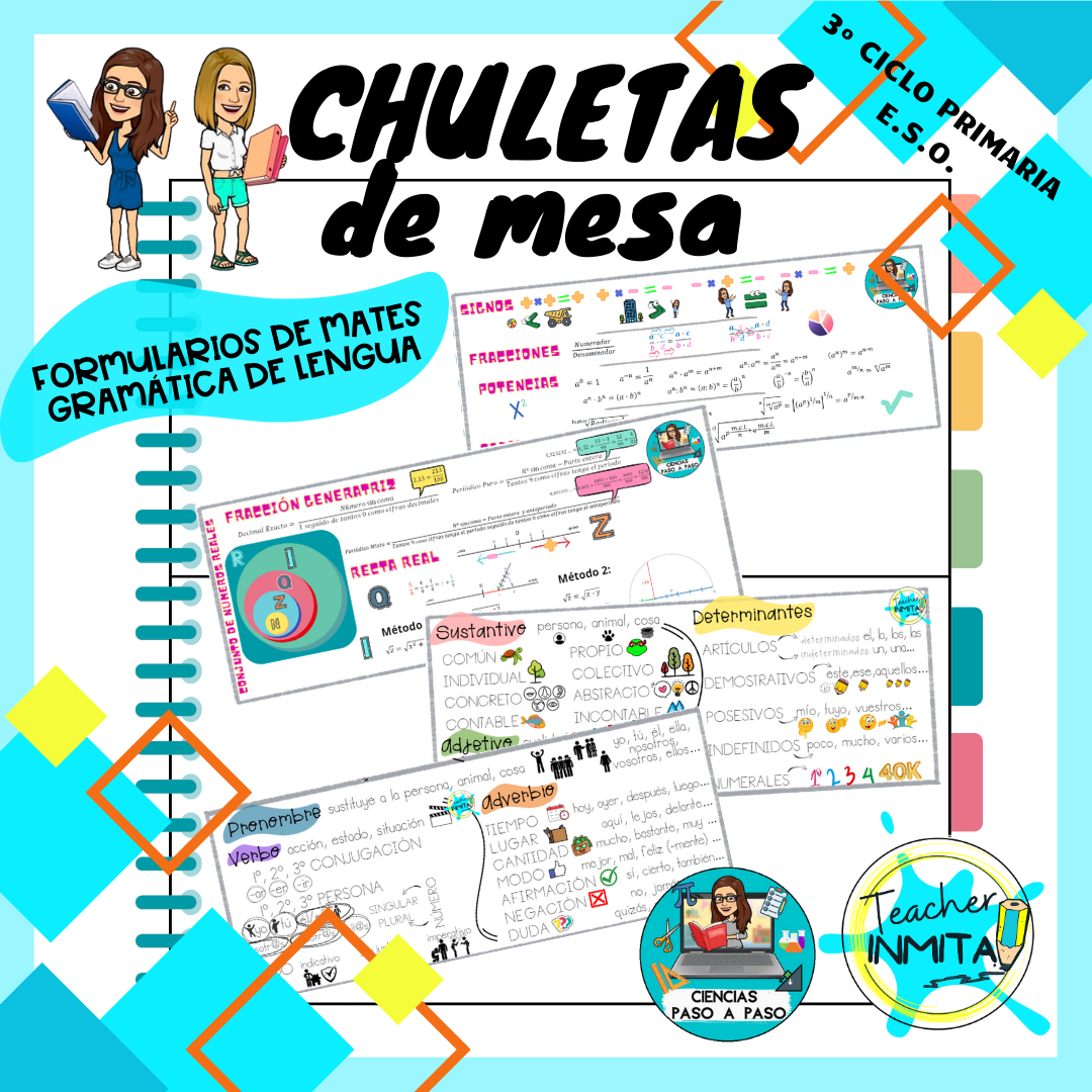 Chuleta resumen de Matemáticas y Lengua, dirigida a alumnado de tercer ciclo de Primaria y E.S.O.