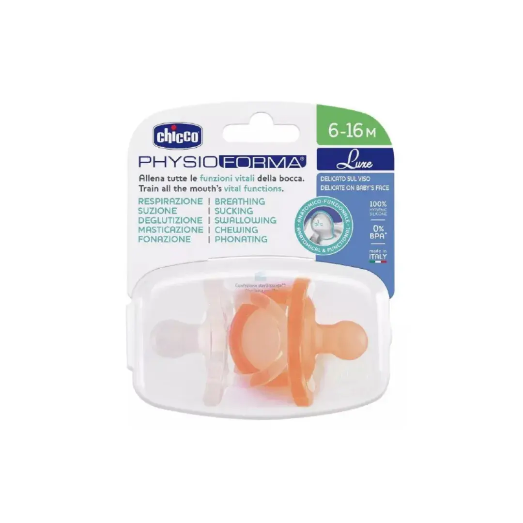 ¡Brinda a tu bebé el máximo confort y seguridad con el Chupete PhysioForma Luxe de Chicco, ideal para bebés de 6 a 16 meses!