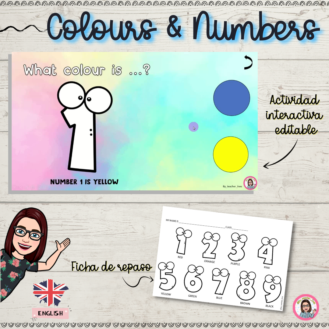 Primero hemos cantado canciones de números y colores, después hicimos varias veces el juego que aquí os muestro en la pizarra interactiva del aula, que se podría hacer, igualmente, en ordenador o tablet 😊 y, finalmente, hicimos la fichita donde de forma aleatoria les decía un número y el color y tenían que ir coloreándolo, como si fuese un dictado de colores 😃