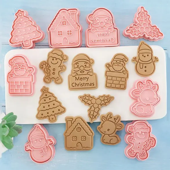 Elementos incluidos: 8 cortadores 3D modelo Feliz Navidad