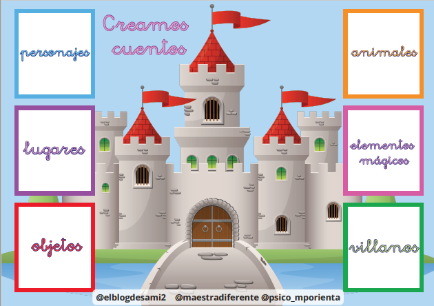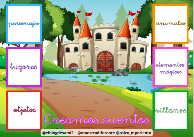 La creatividad es un punto en la imagen del cerebro. Con este recurso obtendrás ayuda para impulsar la creación de los cuentos con ayuda de unos personajes y el plano en el espacio para el escenario.