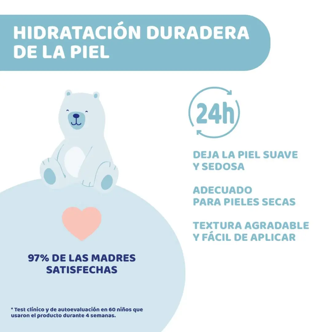 Hidratación profunda: Enriquecida con ingredientes naturales, proporciona una hidratación intensa que mantiene la piel del bebé suave y nutrida durante todo el día.