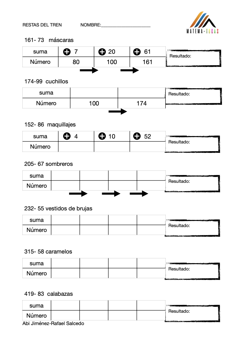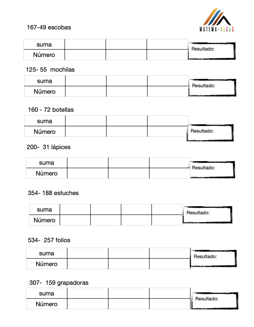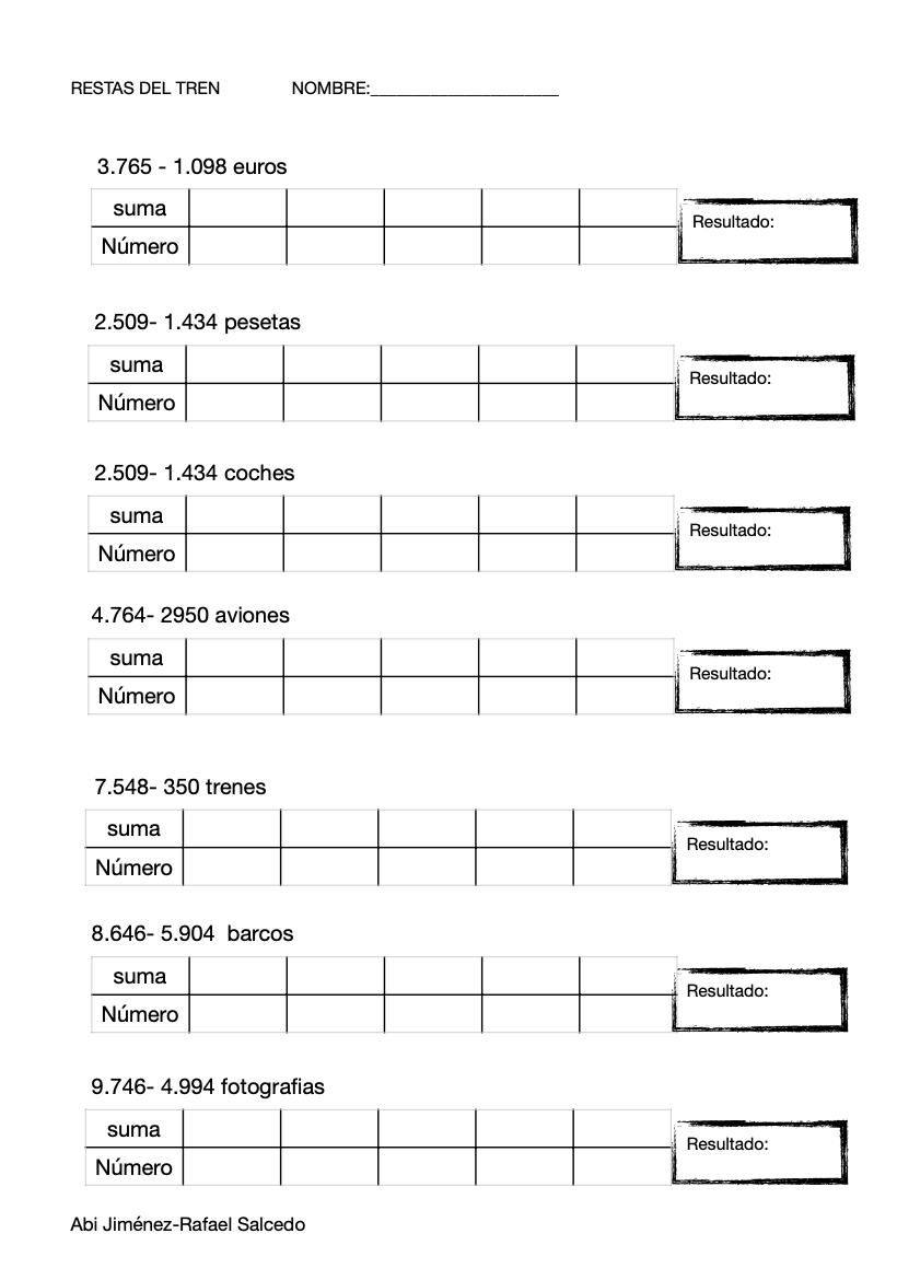 Este cuadernillo es para el trabajo de la resta.