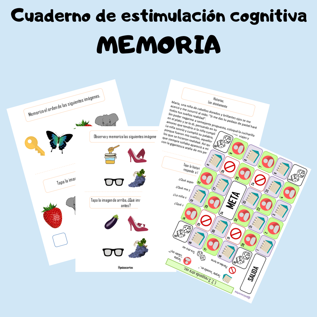 Cuaderno para trabajar la MEMORIA. Elaborado para personas sin deterioro o con deterioro cognitivo leve-moderado y para profesionales.
