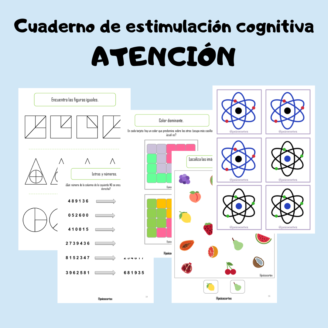 cuaderno con diferentes materiales para trabajar la ATENCIÓN: