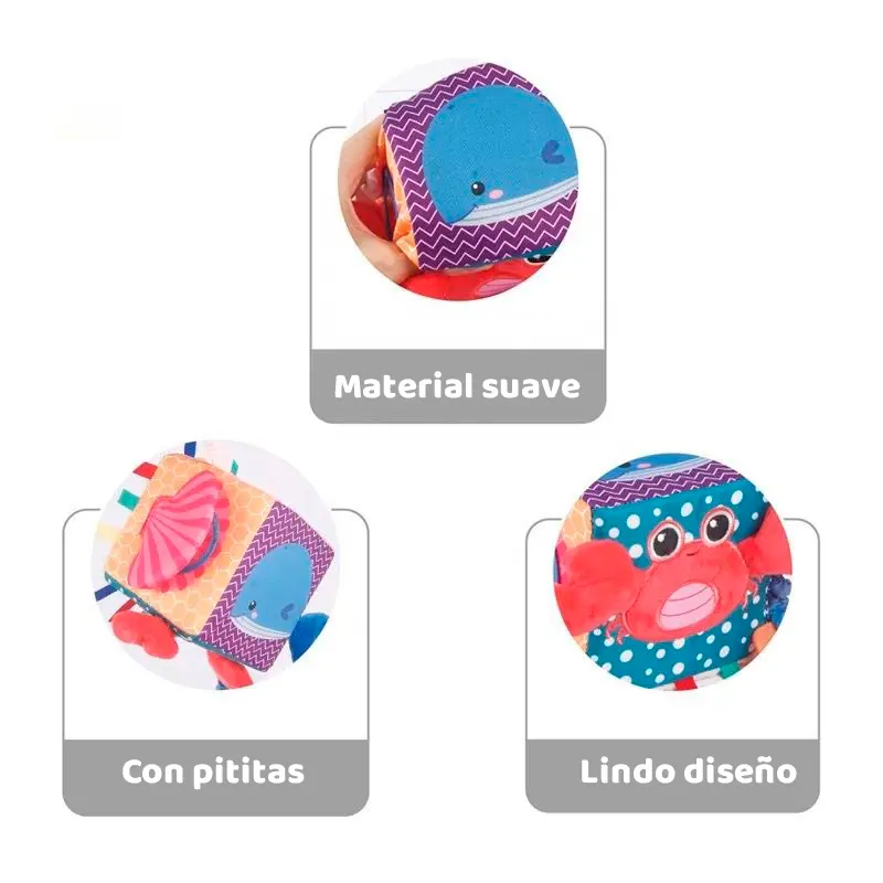 Este cubo sensorial cuenta con divertidas combinaciones de colores, texturas y juegos para tu bebé, que te ayudarán a estimular cada uno de sus sentidos.
