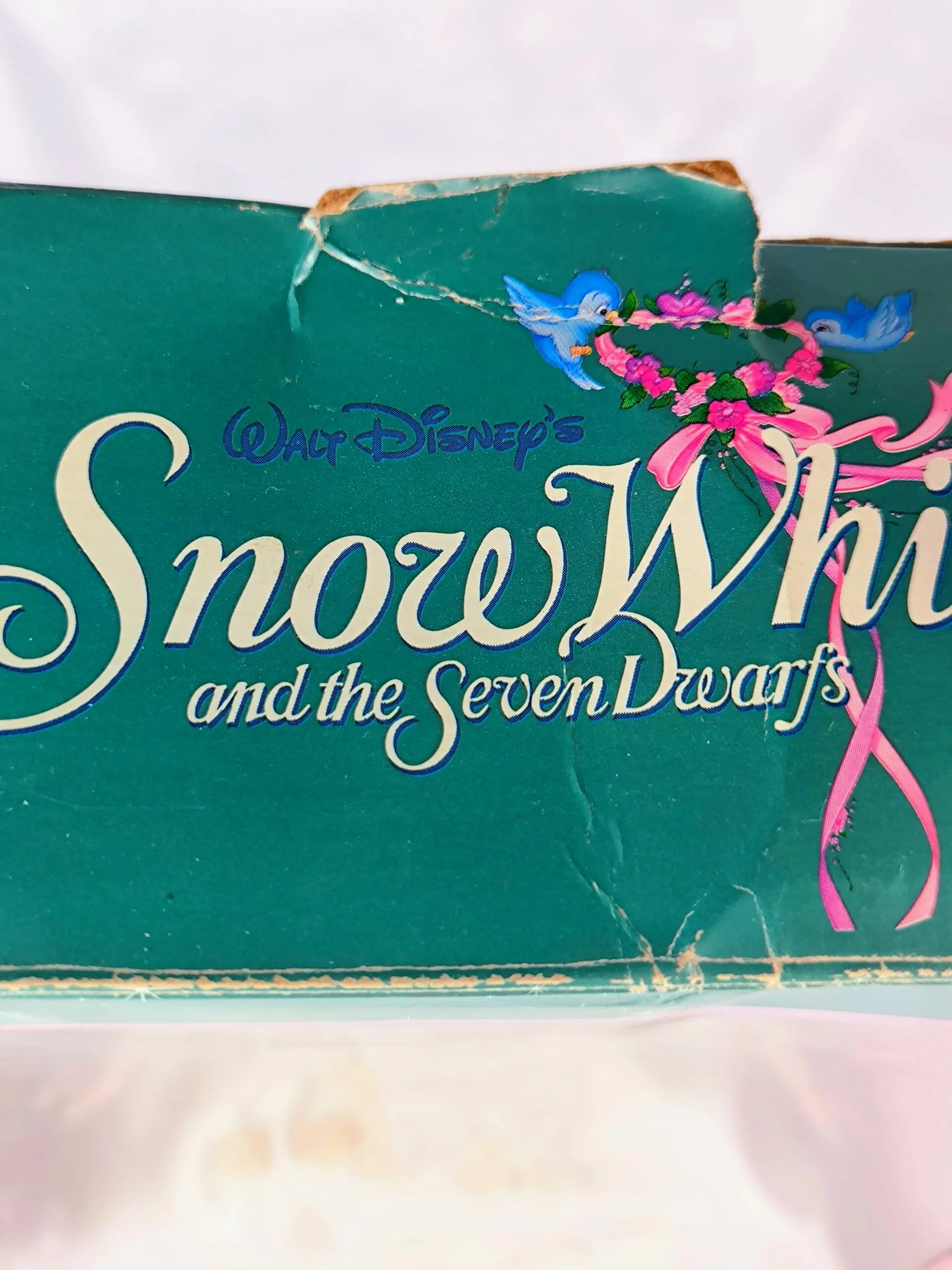 - Caja original decorada con motivos de estrellas, cintas rosadas y un pajarito azul con lazo, evocando la estética del clásico animado