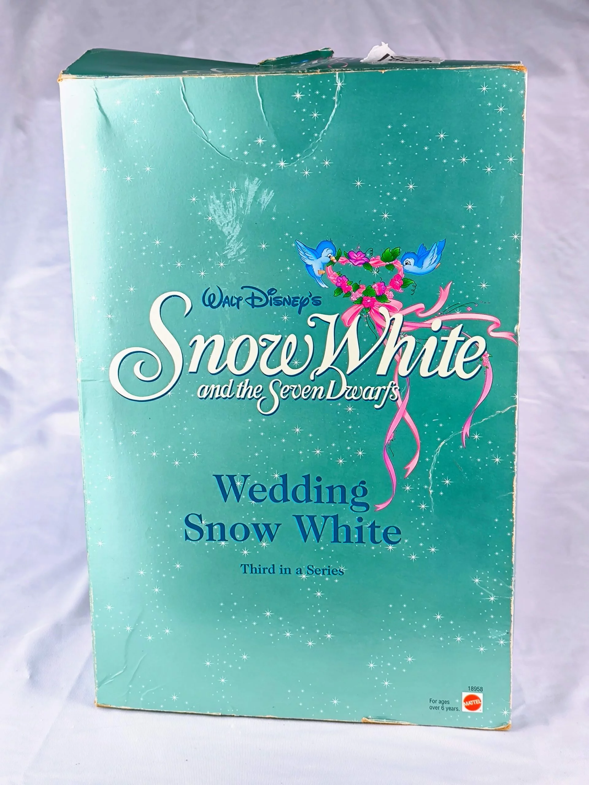 Celebra el encanto de los cuentos de hadas con esta exquisita muñeca de Blancanieves vestida de novia, lanzada por Mattel en 1997 como la tercera entrega de su serie especial de bodas Disney. Esta pieza vintage de 12 pulgadas captura la magia del “felices para siempre” con un diseño romántico y lleno de detalles: