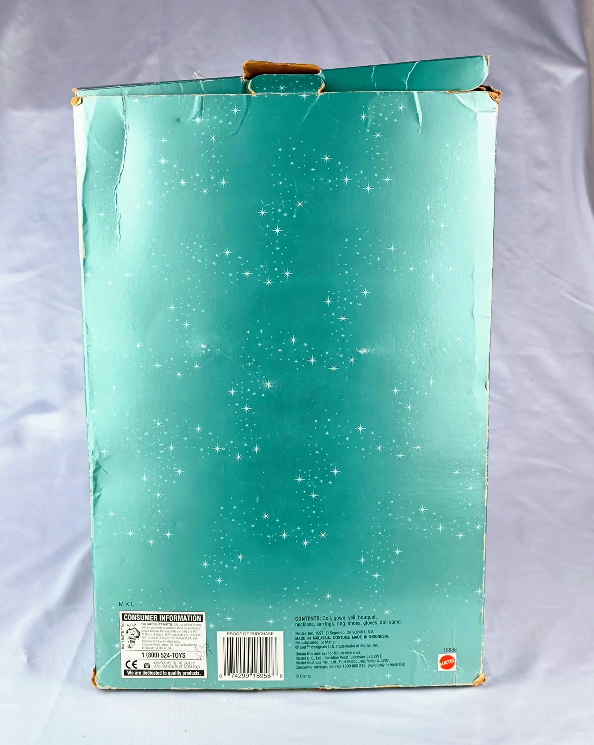 - Tamaño: 12 pulgadas | Año: 1997 | Marca: Mattel | Serie: tercera en la colección de bodas Disney