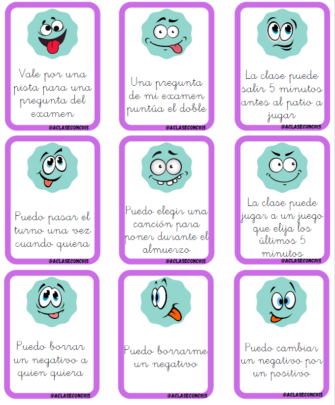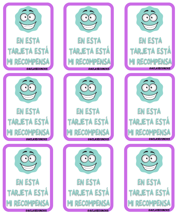 Tarjetario para reforzar el comportamiento de nuestr@s alumn@s y motivarles. Con más de 25 recompensas para usar en el aula. Plastifica para usarlas durante todo el curso.
