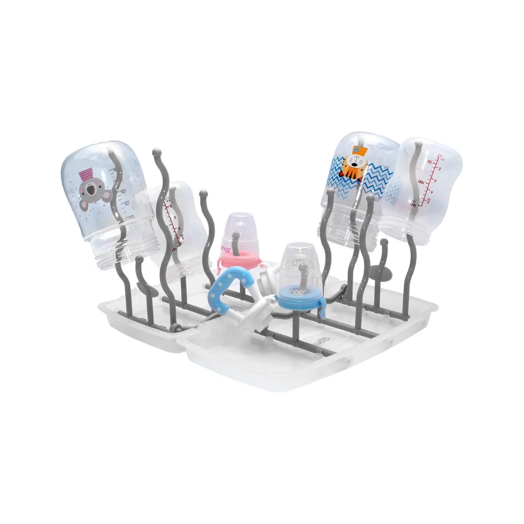 Fabricado con materiales resistentes y seguros, este escurridor portátil es el complemento perfecto para asegurar la higiene de los utensilios de tu bebé donde sea que estés.