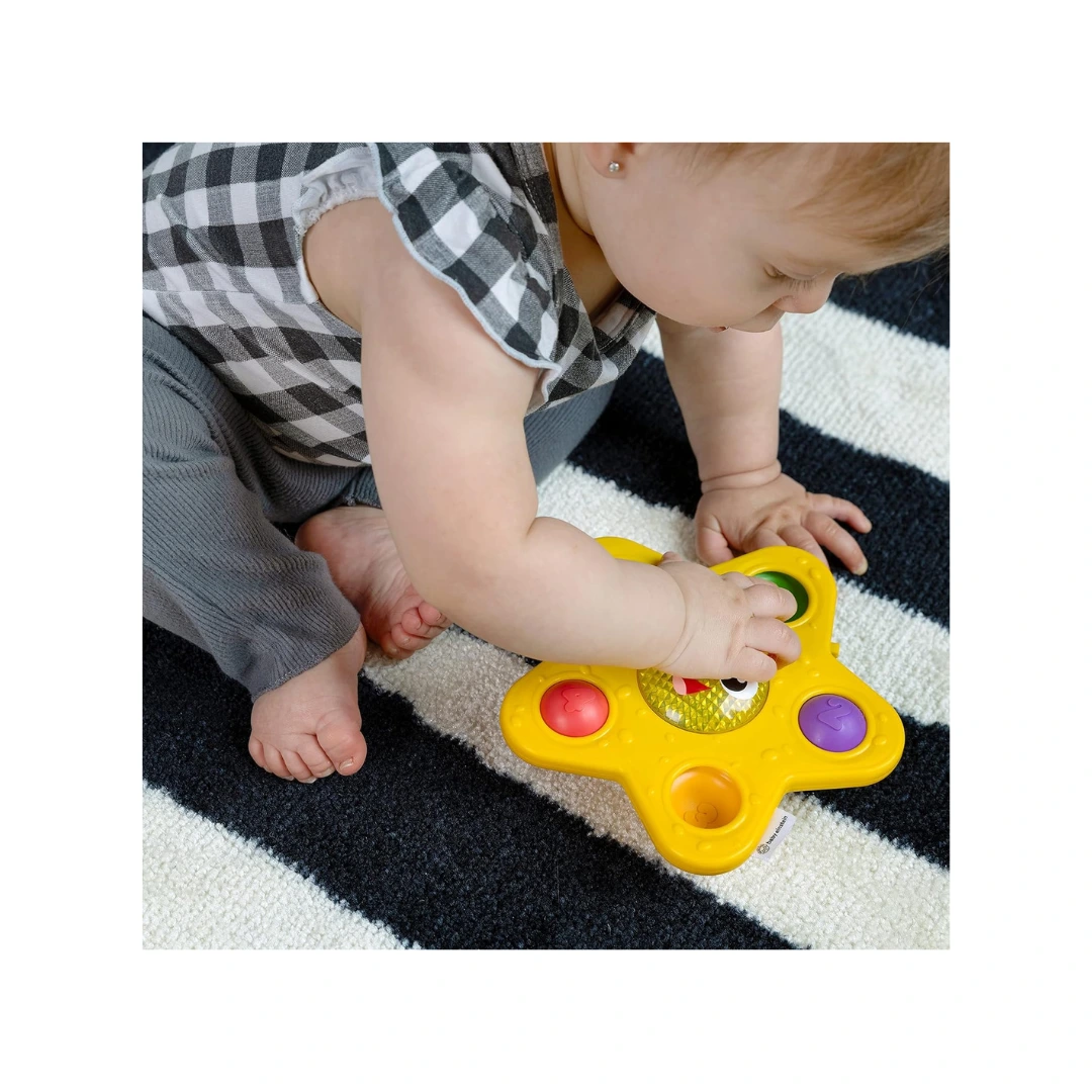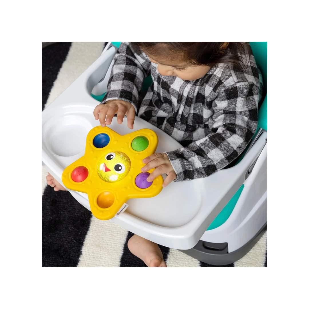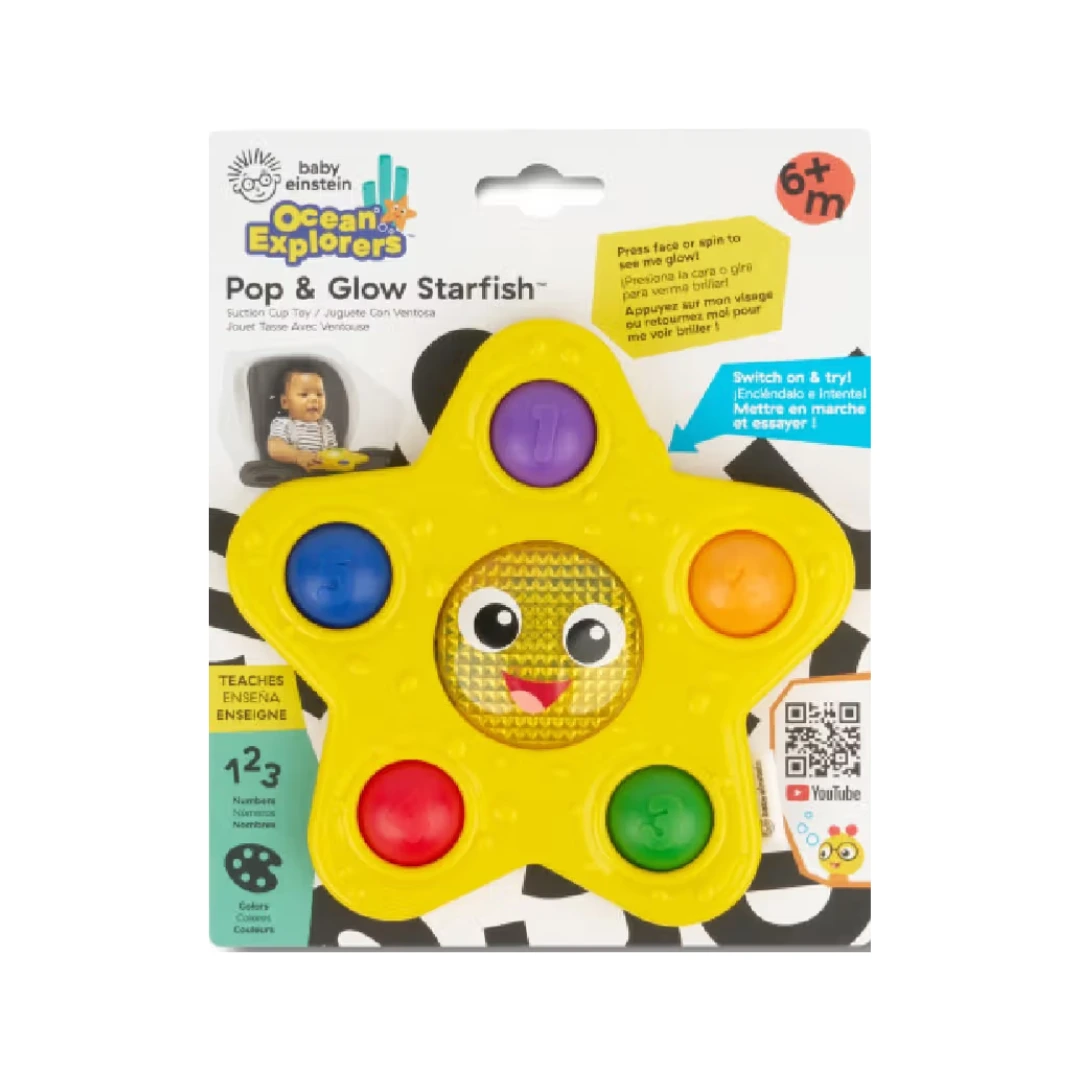 - Base con Ventosa Firme: La ventosa en la base del juguete asegura que la estrella se mantenga en su lugar, ya sea en la trona, en la mesa o en cualquier superficie lisa, permitiendo un juego seguro y estable.