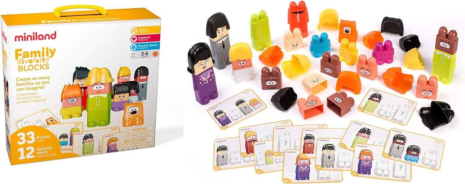 Facilita el conocimiento de los distintos modelos familiares actuales a través de la manipulación de bloques de juego. Fomenta el respeto hacia la diversidad mediante la verbalización de los distintos tipos de familia.