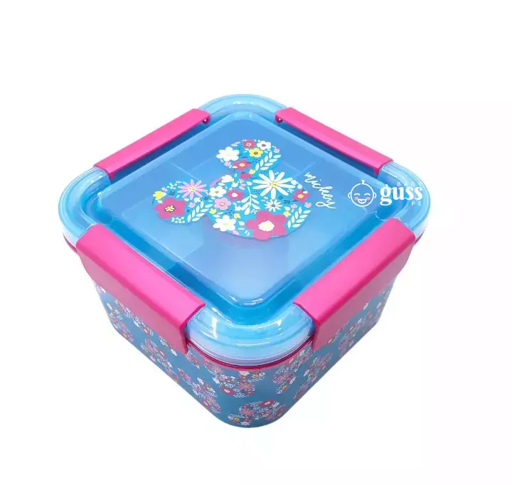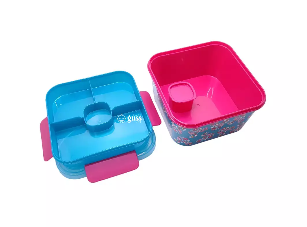 Original y práctica fiambrera con 5 compartimentos para plato principal, fruta, snacks o dip, todos separados para evitar mezclar sabores y olores. Ideal que lleven su almuerzo al parque, al colegio o en cualquier salida fuera de casa. Fabricado en material resistente y con cierre de seguridad. Decorado con atractivos diseños basados en los personajes principales de su serie favorita, los niños estarán encantados de llevárselo allá donde vayan.