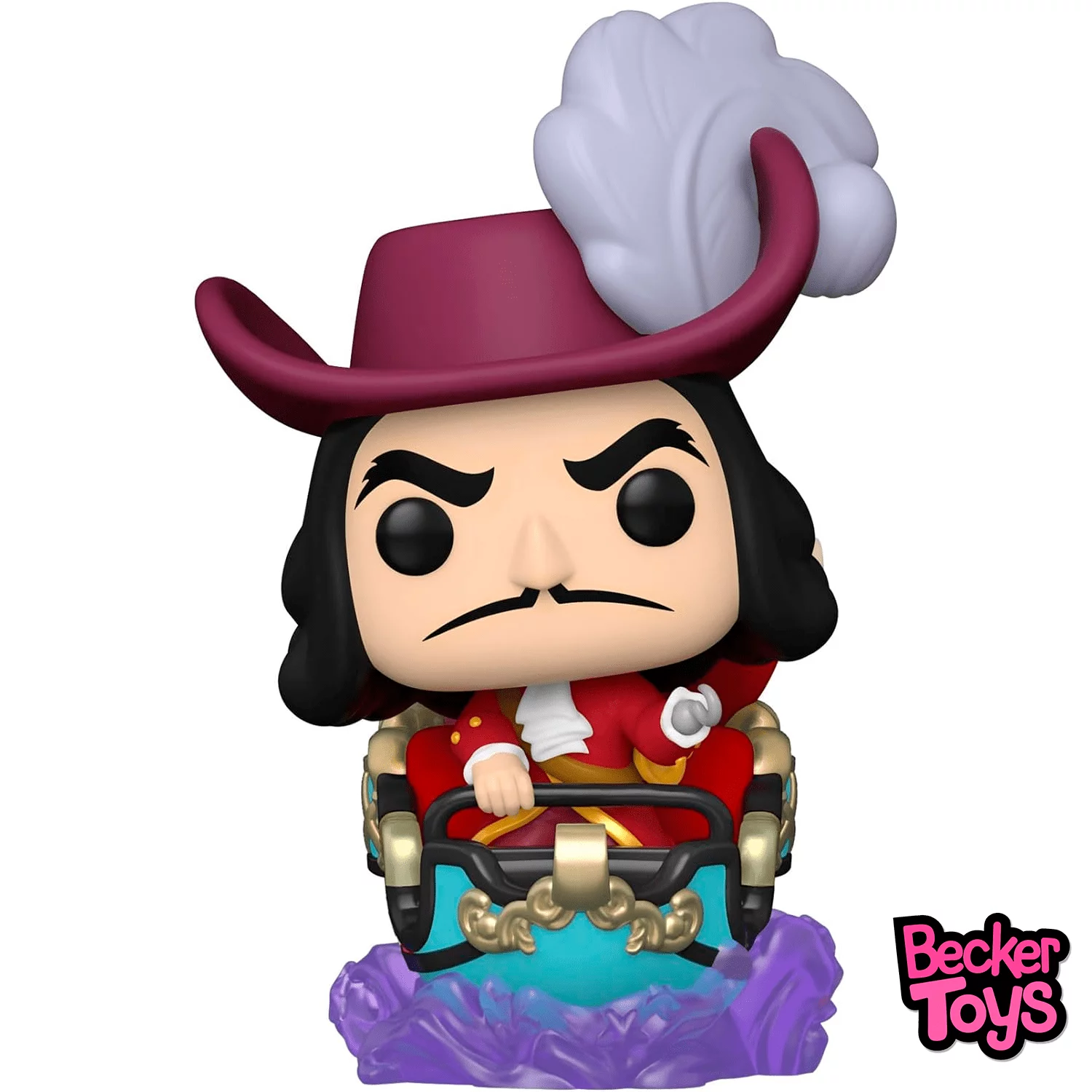 Este Funko Pop! es una pieza de la colección Walt Disney World 50th Anniversary y representa a Captain Hook en la atracción Peter Pan’s Flight. Es una figura de vinilo que mide aproximadamente 12.07 cm de altura y captura la magia clásica de Disney con una escultura animada del capitán villano. Hook luce su icónico abrigo rojo con detalles dorados y el característico gancho en lugar de su mano izquierda.