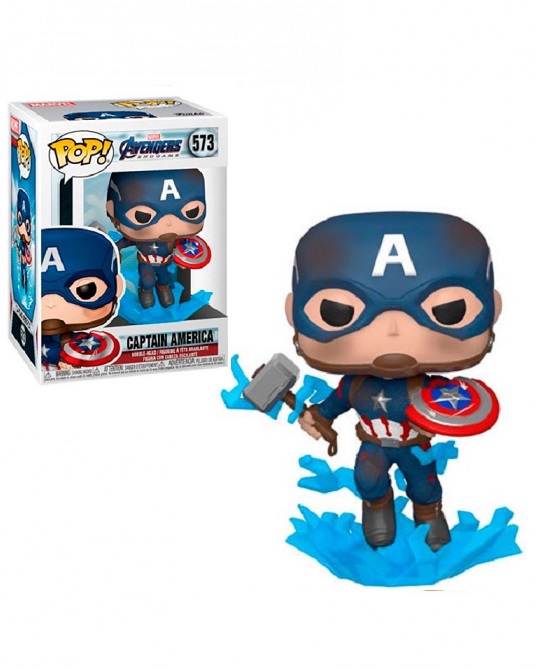 Funko Pop de Marvel de Capitán América con el Mjolnir y el escudo.