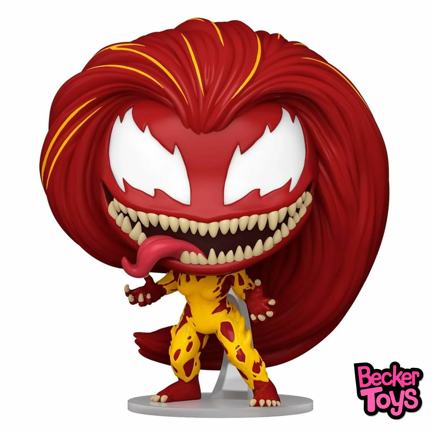 Esta figura pertenece a la línea POP! Games y muestra a Scream, una de las cinco entidades simbióticas derivadas de Venom. Su diseño destaca por su melena amarilla en forma de tentáculos, piel rojiza con vetas negras, y una expresión salvaje que transmite su naturaleza violenta. El estilo Funko suaviza sus rasgos sin perder el impacto visual, convirtiéndola en una figura llamativa y dinámica.