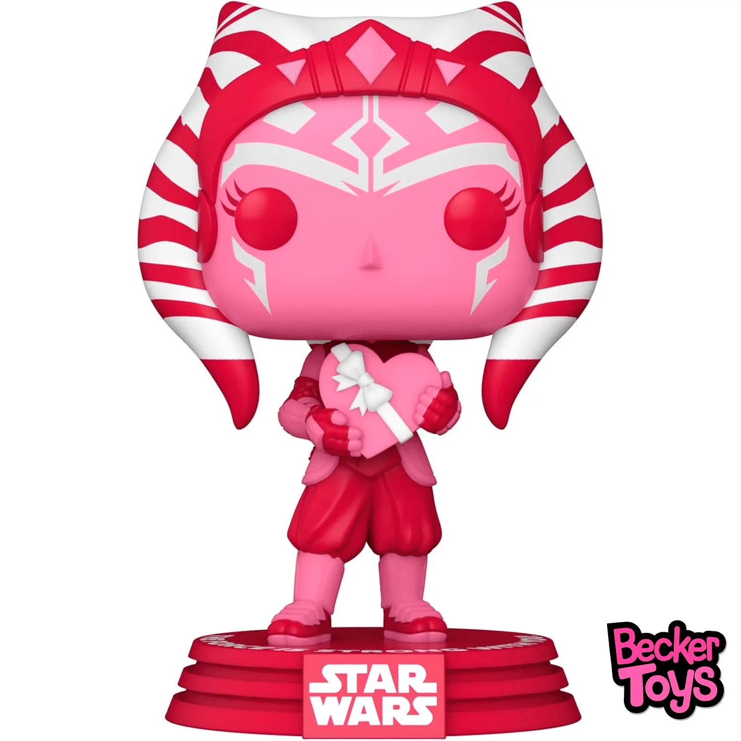 El Funko Pop! Star Wars: Valentines – Ahsoka Tano es una figura especial diseñada para el Día de San Valentín. Esta figura de vinilo coleccionable presenta a Ahsoka Tano con un esquema de colores rojo, rosa y blanco, lo que la convierte en una adición vibrante a cualquier colección de Star Wars.