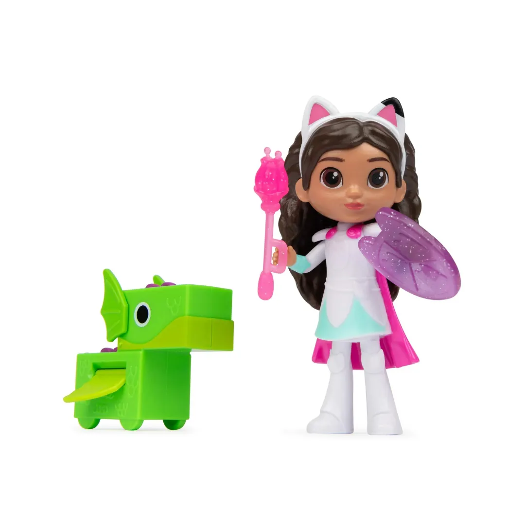 - Personajes Icónicos: El set incluye una figura de Gabby the Brave, vestida con su armadura, lista para proteger su reino y embarcarse en emocionantes misiones. Acompañándola está su compañero dragón, con alas móviles y detalles fantásticos que capturan la esencia mágica de la serie.